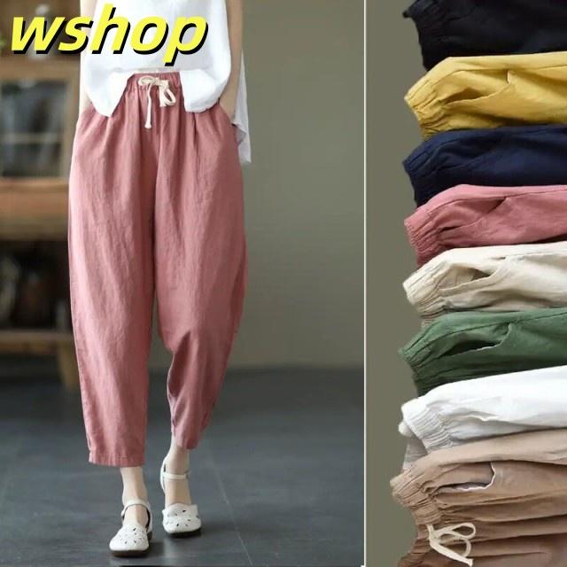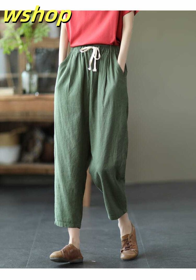 季節限定アイテム 店長太鼓判 9分丈 ボ 今だけ 】全9色!サルエルパンツ ワイド 綿麻 送料無料 無地 軽量仕様 春夏 レディース 【wshop SNS話題 パンツ 送料無料実施中