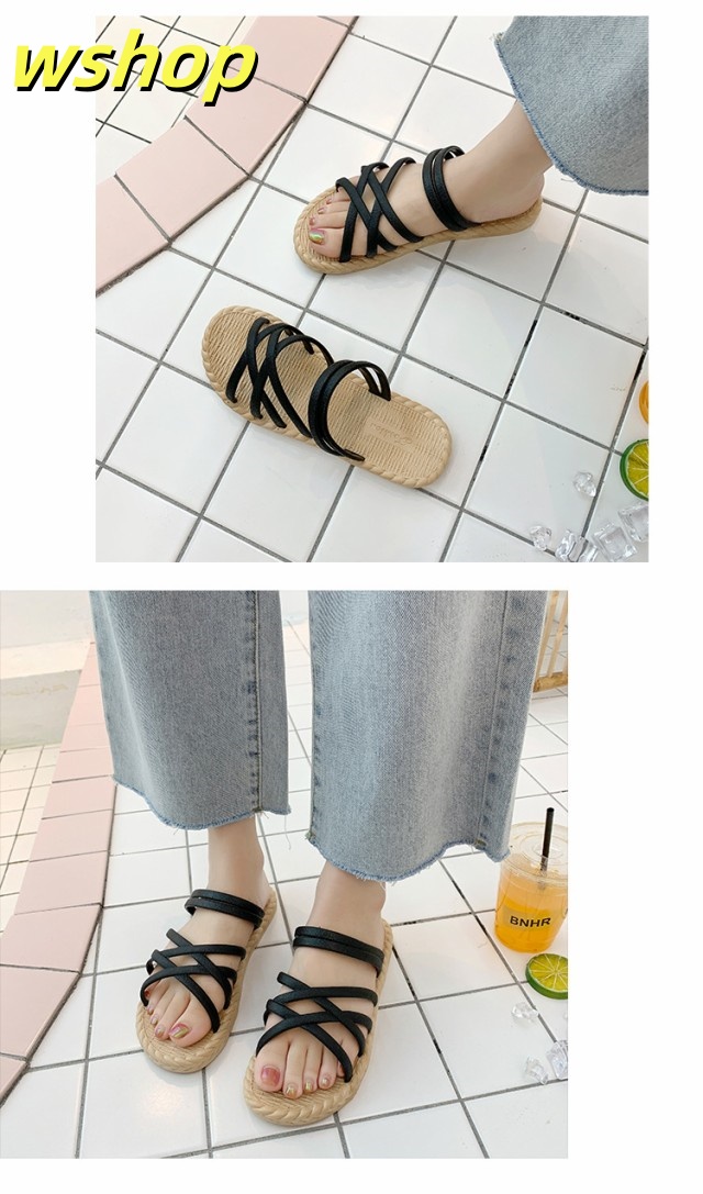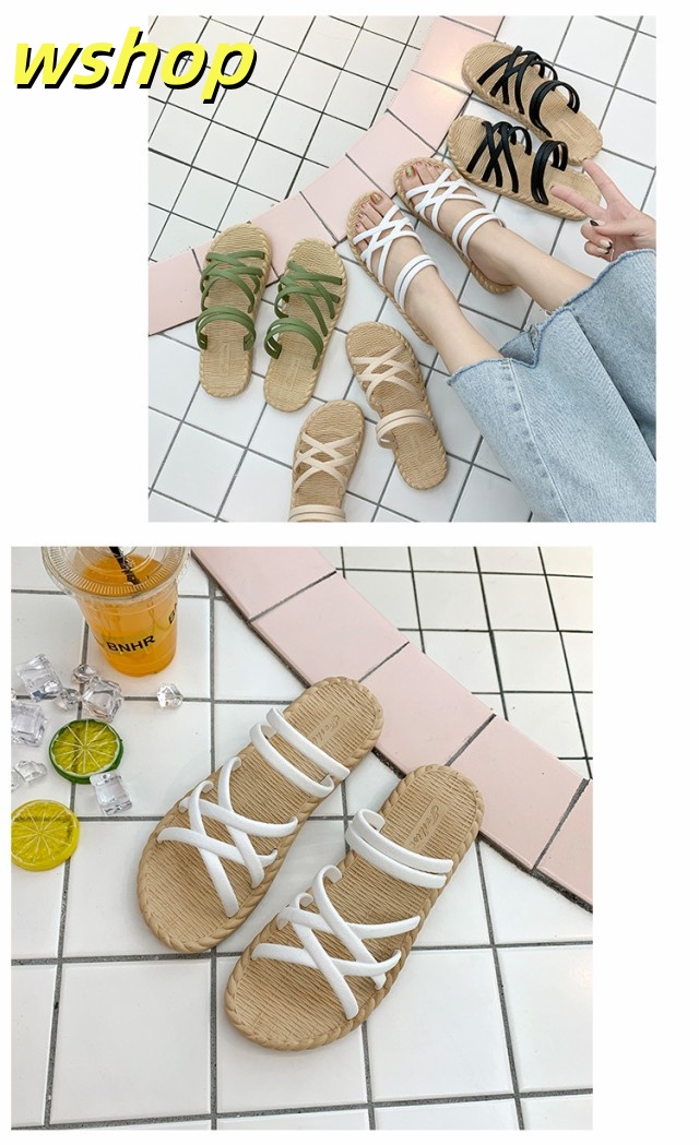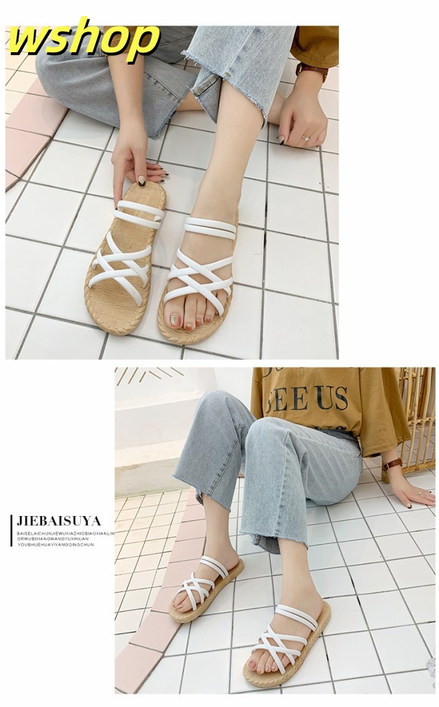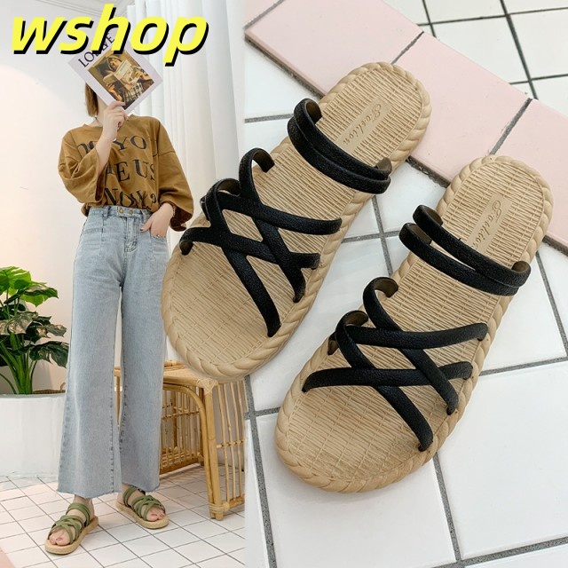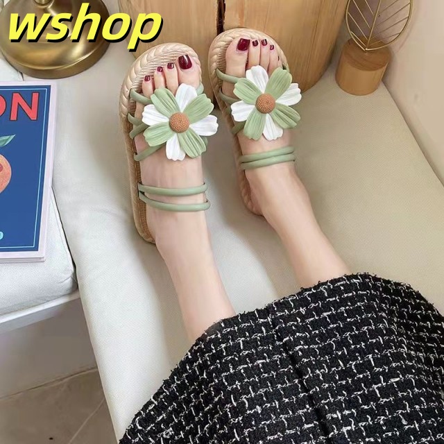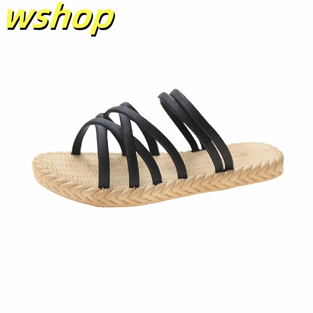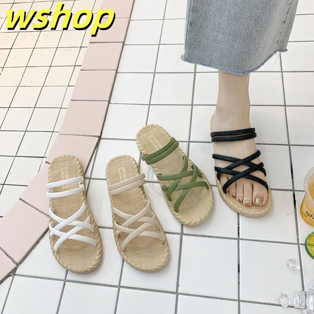 両用サンダル レディース ビーチサンダル ぺたんこサンダル カモミール柄 クロス 編み バックストラップ 軽い 歩きやすい 可愛い