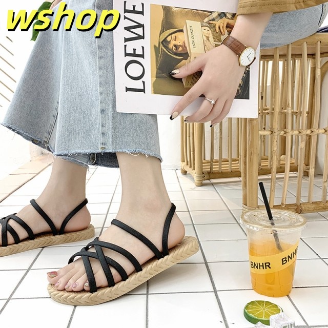 在庫限りの大特価 ギフトにも最適 歩きやすい 軽い ビーチサンダル 売上急増中 レディース 軽量仕様 編み 送料無料 】両用サンダル カモミール柄 クロス バックストラップ ぺたんこサンダル 可愛い 【wshop 送料無料実施中