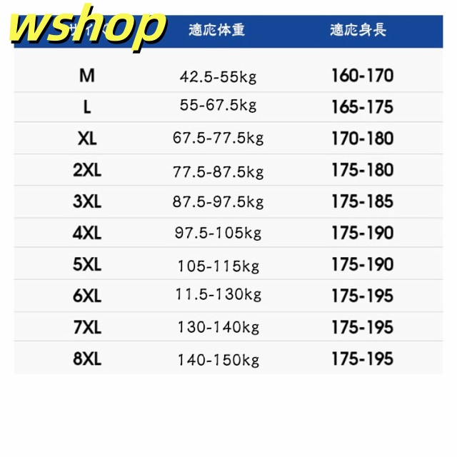 | サイズ | M L XL 2XL 3XL 4XL 5XL 6XL 7XL 8XL |