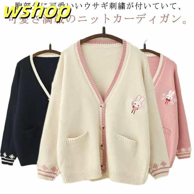 レビュー高評価商品 ギフトにも最適 刺繍入り ゆったり Vネック 可愛い SNS話題 秋服 長袖 送料無料 人気急上昇 ニット 【wshop 春服 レディース 】ウサギ刺繍 ニットウエア 森ガール アウター カーディガン 羽織り ニットカーディガン お買い得プライス