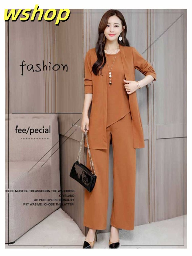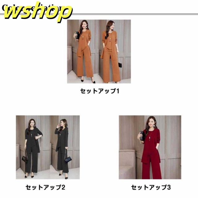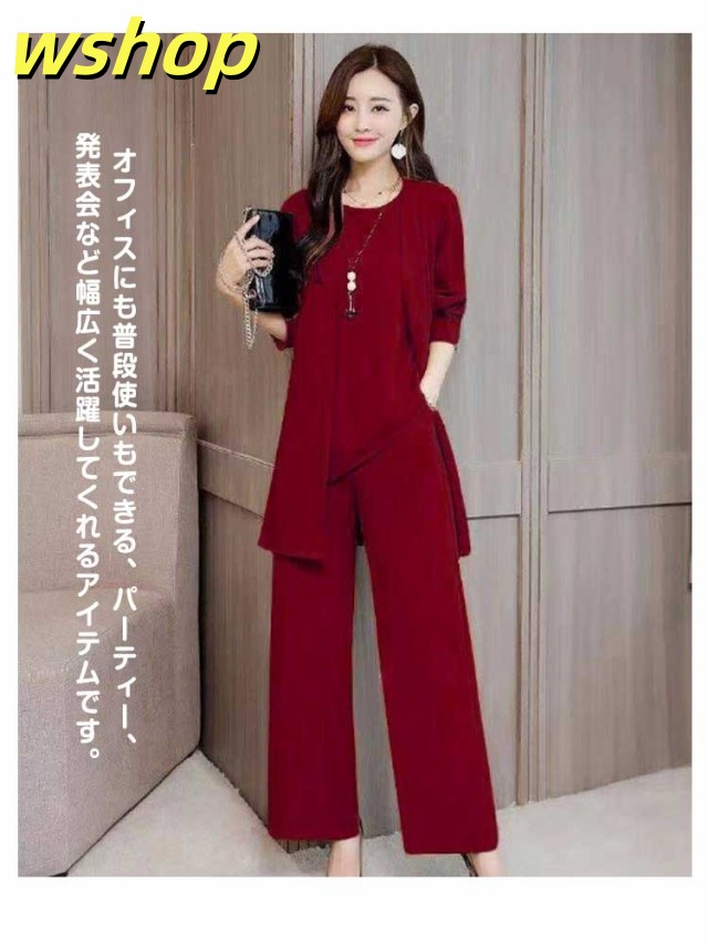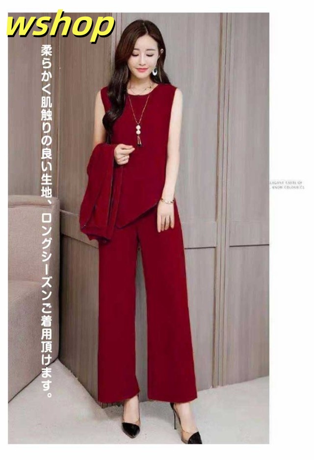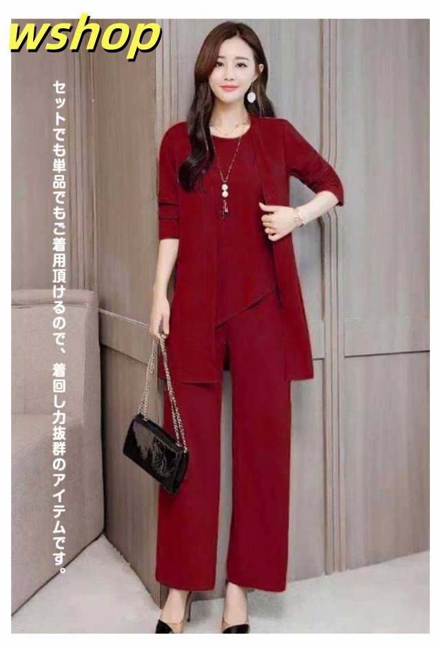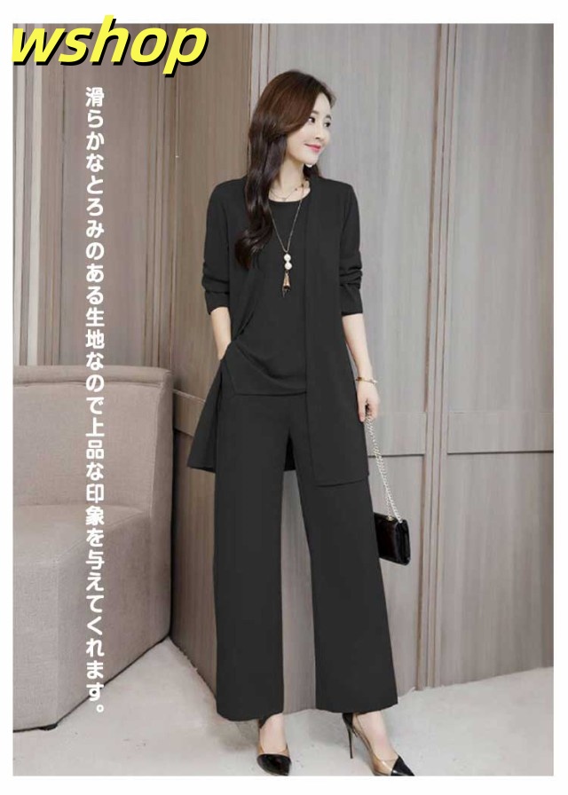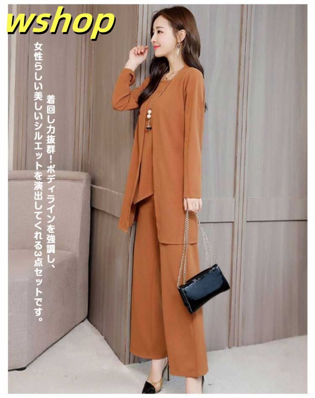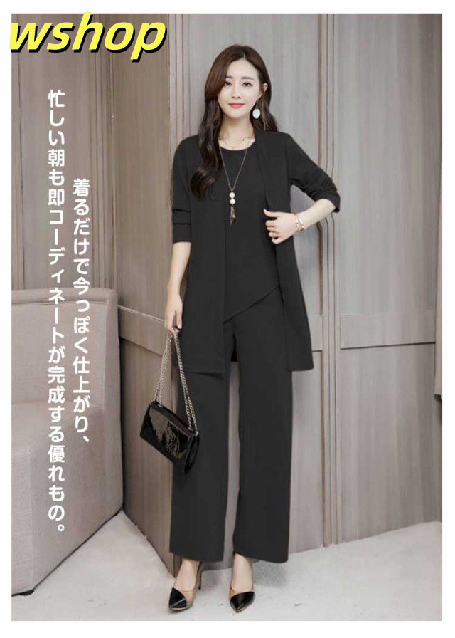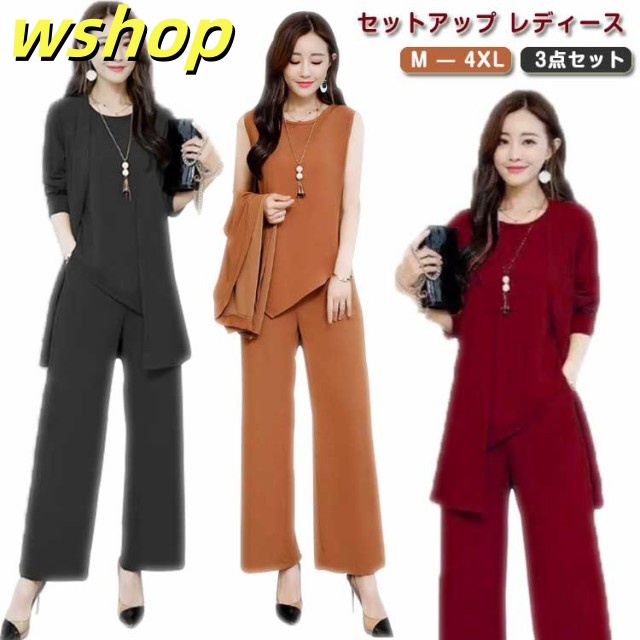 新登場 SNS話題 レディース 【wshop カーディガン 3点セット ママ 秋 春 ブラウス パンツスーツ OL ワイドパンツ 】セットアップ パンツドレス 通勤 ノースリーブ 2XL 3XL XL 結婚式 4XL M L 卒業式 大きいサイズ ガウチョパンツ オフィス 入学式 着痩せ フォーマル 送料無料