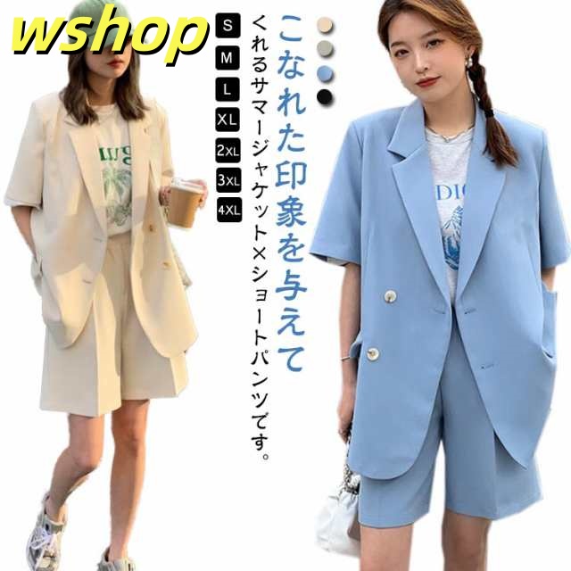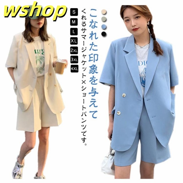 軽量仕様 売上急増中 L 夏 テーラードジャケット上下セット OL 40代 2XL 】セットアップ カジュアル 【wshop 30代 短パン ママ 4XL 半袖 スーツ XL レディース ジャケット パンツスーツ 20代 3XL きれいめ ショートパンツ 春 半袖アウター S M 大人 在庫わずか