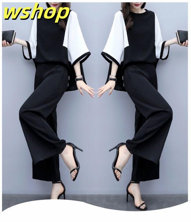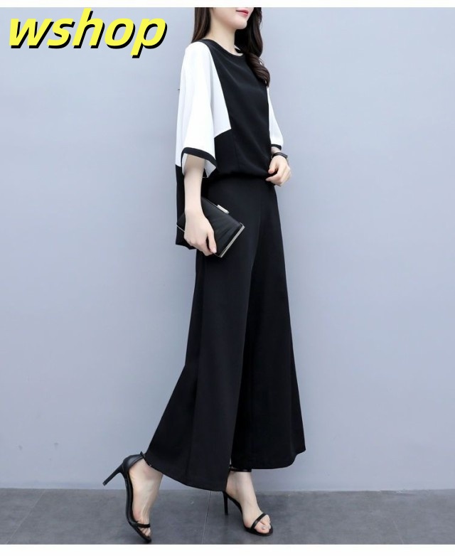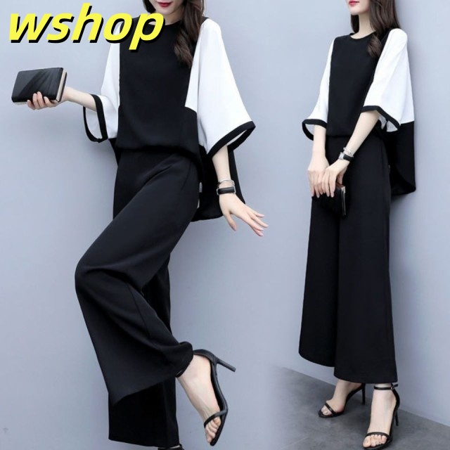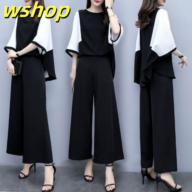 即納OK 売上急増中 パンツスタイル 】パンツスーツ ワイドパンツ 大きいサイズ 黒 【wshop レディース カジュアル 着痩せ ゆったり セットアップ フォーマル 通勤OL 体型カバー ブラウン キレイめ パンツスーツ ロングパンツ 送料無料