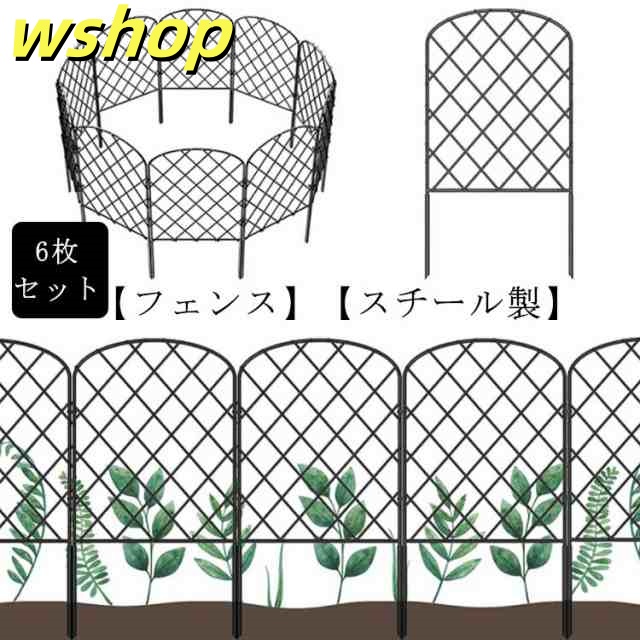 【wshop 】6枚セット アイアンフェンス 花壇フェンス ガーデンフェンス スチールフェンス 柵 おしゃれ 差し込み 屋外 ガーデニング 庭 エクステリア 仕切り 簡単設置 黒 ブラック イージーフェンス ゲート ベランダ DIY お手軽 ガーデンエッジ 花壇 鉄 土留め 目隠し