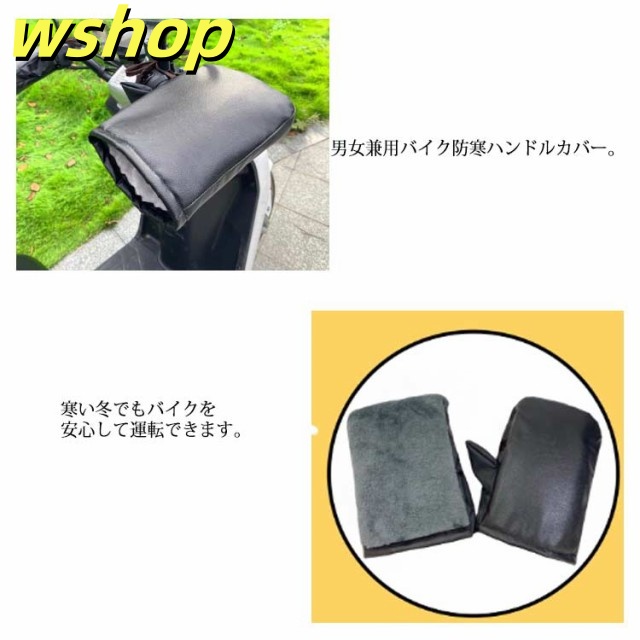 【wshop 】【1セット】 バイク 防寒 ハンドルカバー グローブ 防寒グッズ 裏起毛 防寒 保温 PU レザー 防風 防水 スクーター オートバイ 冬 防寒グローブ 裏ボア あたっか 暖かい 撥水 寒さ よけ おしゃれ かわいい レディース メンズ 通勤 通学 汎用 【送無】