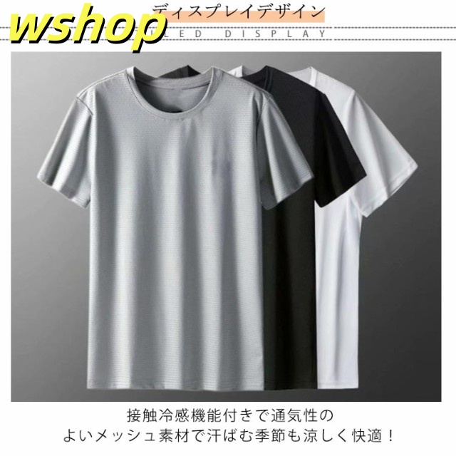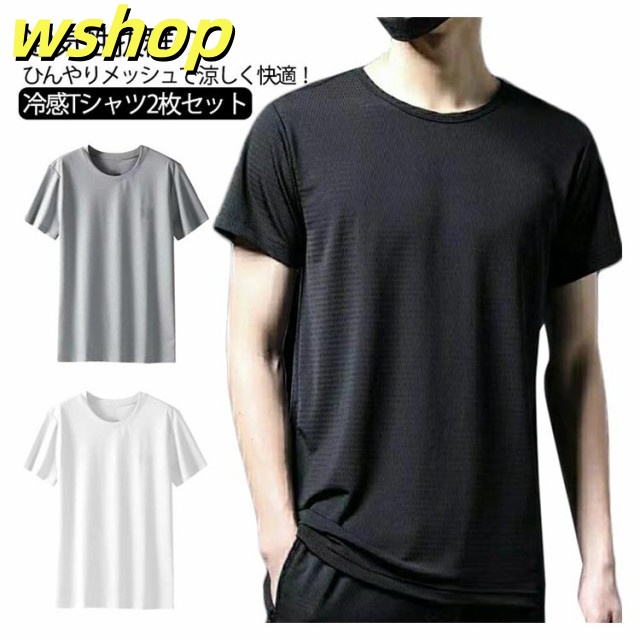 2枚セット Tシャツ メンズ 接触冷感 吸汗速乾 メッシュTシャツ ドライtシャツ ドライメッシュ 速乾tシャツ 無地 半袖tシャツ ストレッチ おしゃれ シンプル クルーネック スポーツ ランニング ウォーキング サッカー 野球 スポーツウェア 登山 ルームウェア 春夏 送料無料