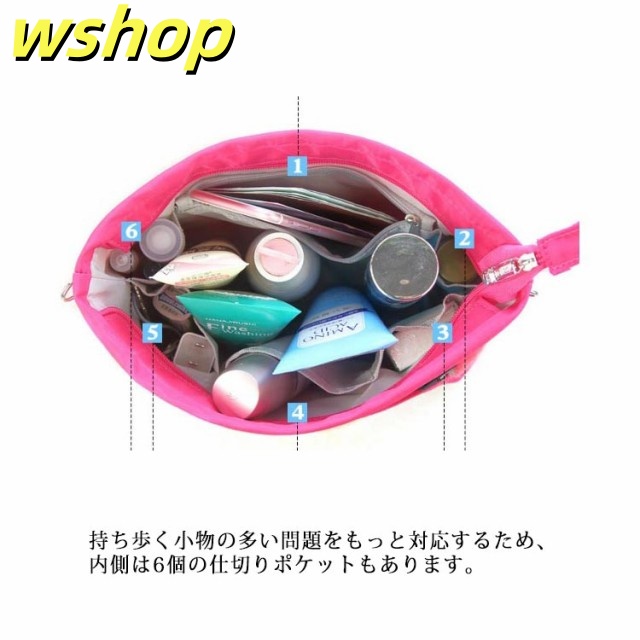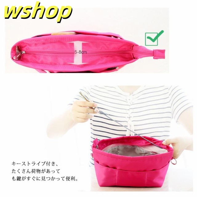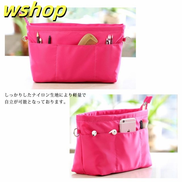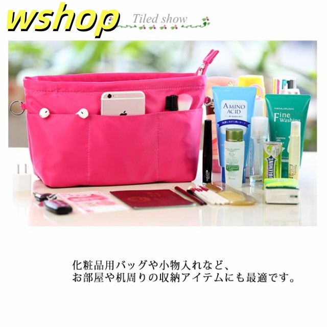 | 小物が散らかりがちなトートバッグなどの中身をスッキリ整頓できます! 持ち歩く小物の多い問題をもっと対応するため、内側は6個の仕切りポケットもあります。 外側は大小さまざまなサイズのポケットなので、小物がぴったり収納できます。 忙しい朝、バッグ替えも楽々!形が崩れにくいのでバッグの中でも使いやすいです。 しっかりしたナイロン生地により軽量で自立が可能となっております。 バッグの口のファスナー部分は大きく開き、ひと目で中身も確認できます。 キーストライプ付き、たくさん荷物があっても鍵がすぐに見つかって便利。 化粧品用バッグや小物入れなど、お部屋や机周りの収納アイテムにも最適です。 | |