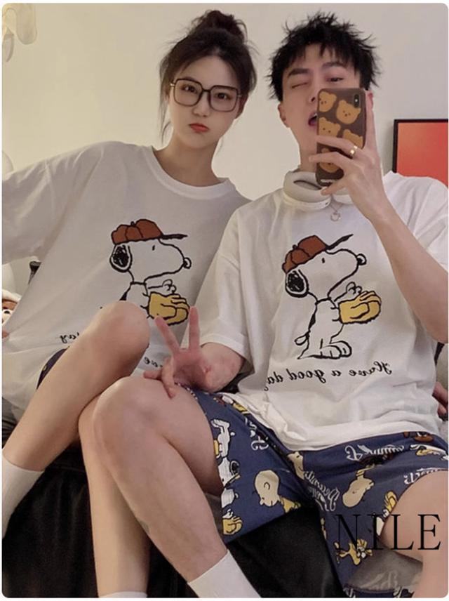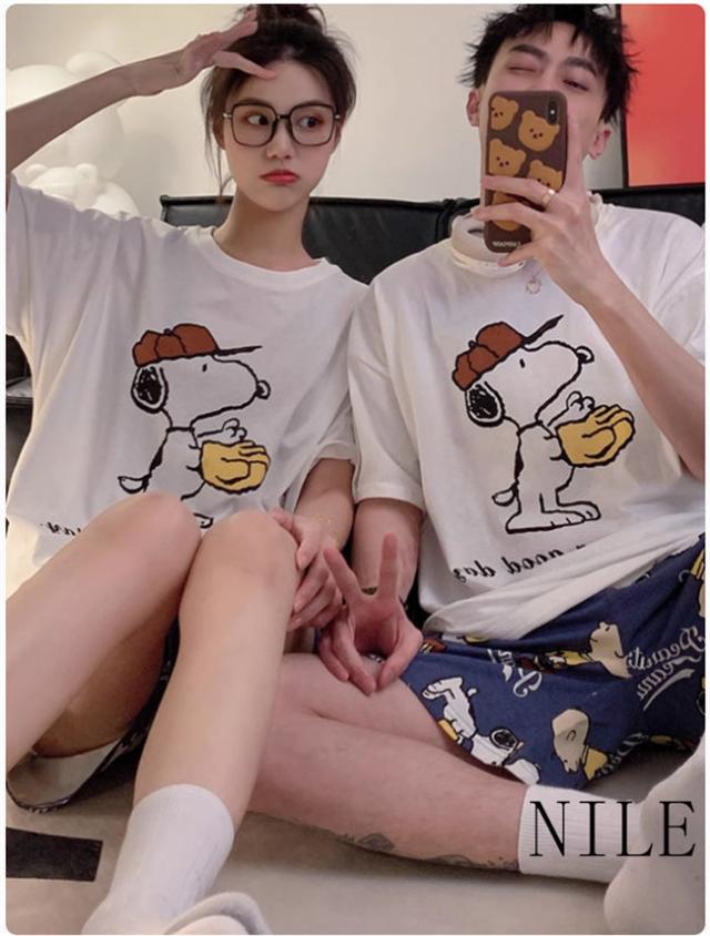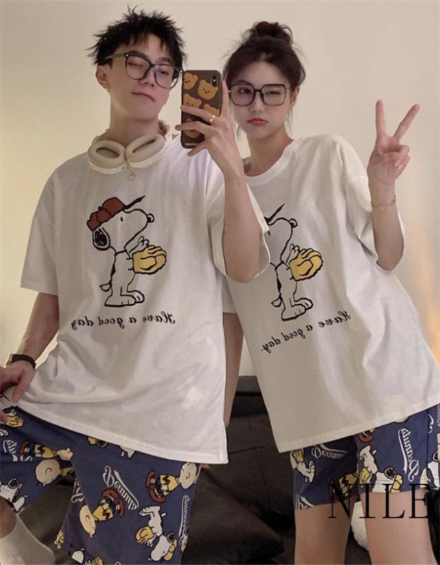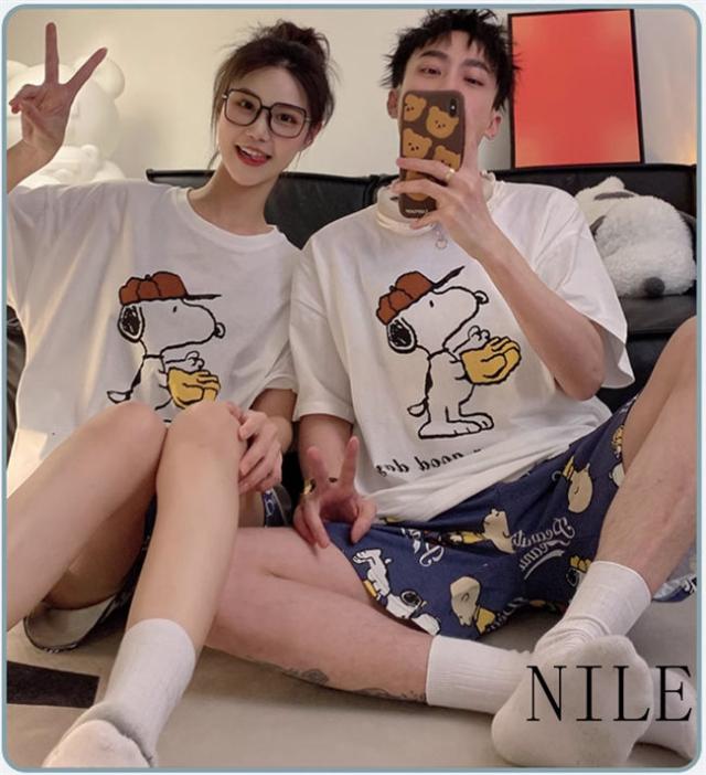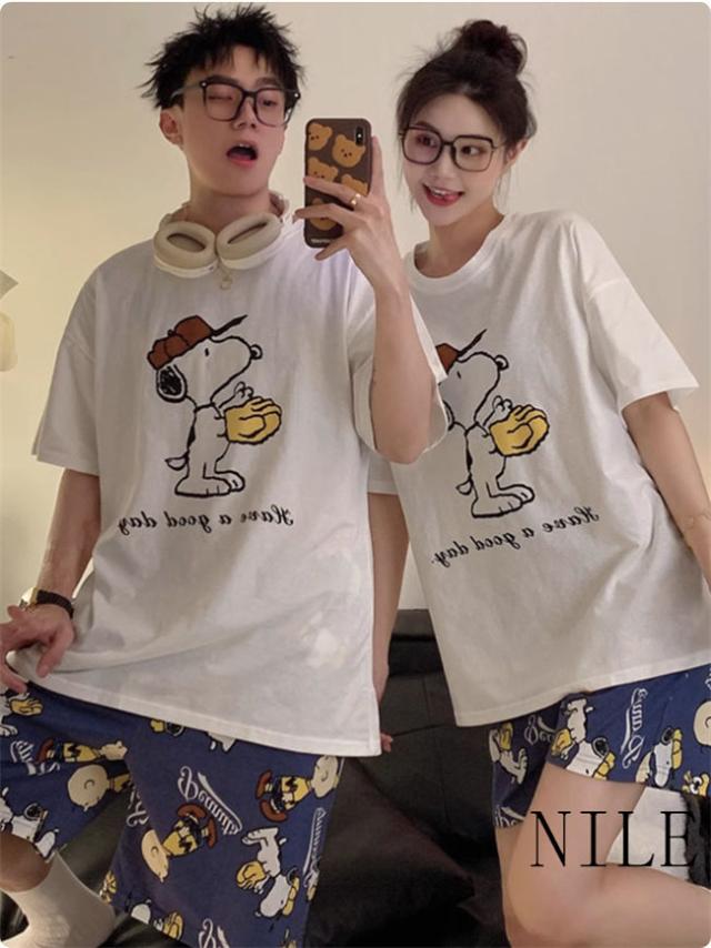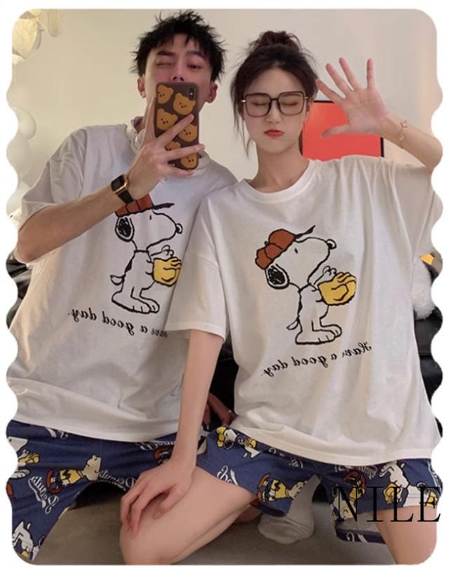 春夏 スヌーピー ペアパジャマ レディース パジャマ ルームウェア ペアルック カップル パジャマ メンズ レデイース スヌーピー 寝巻き 男女セット 結婚祝い お揃い 部屋着 人気 新品