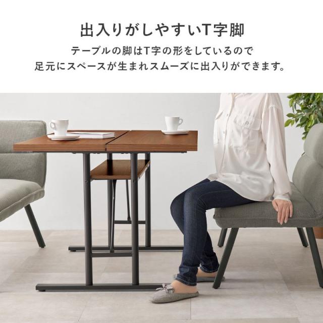 ●天板を広々使えるテーブルはソファ使いでも出入りがしやすいT字脚タイプ