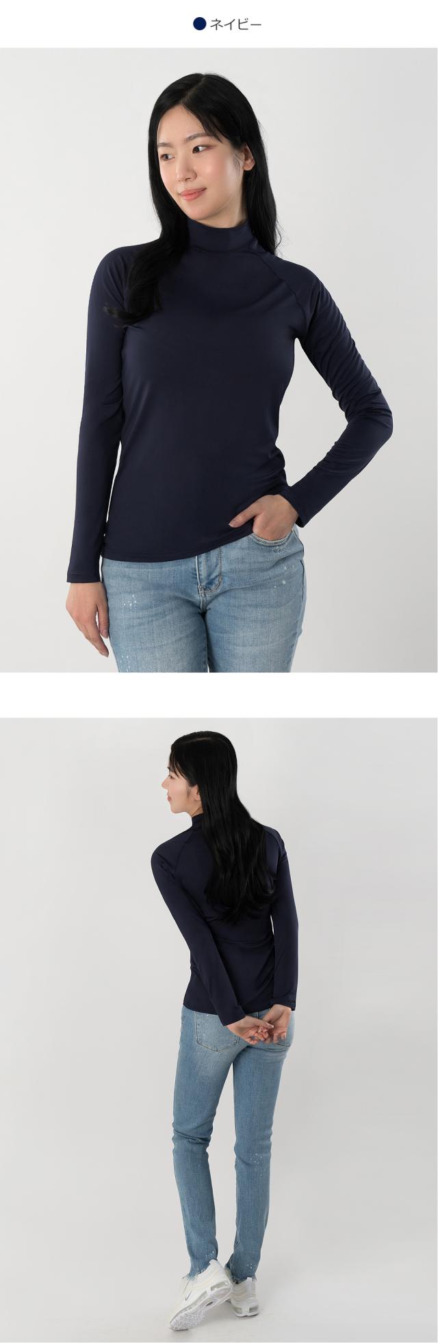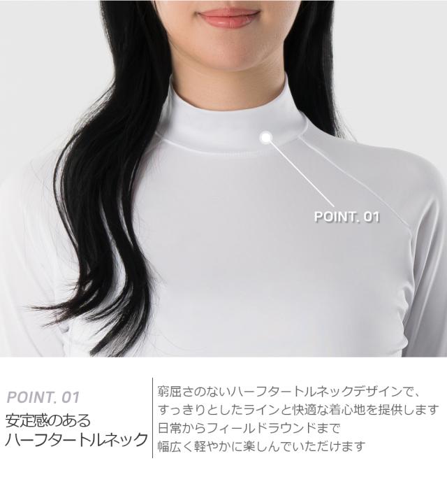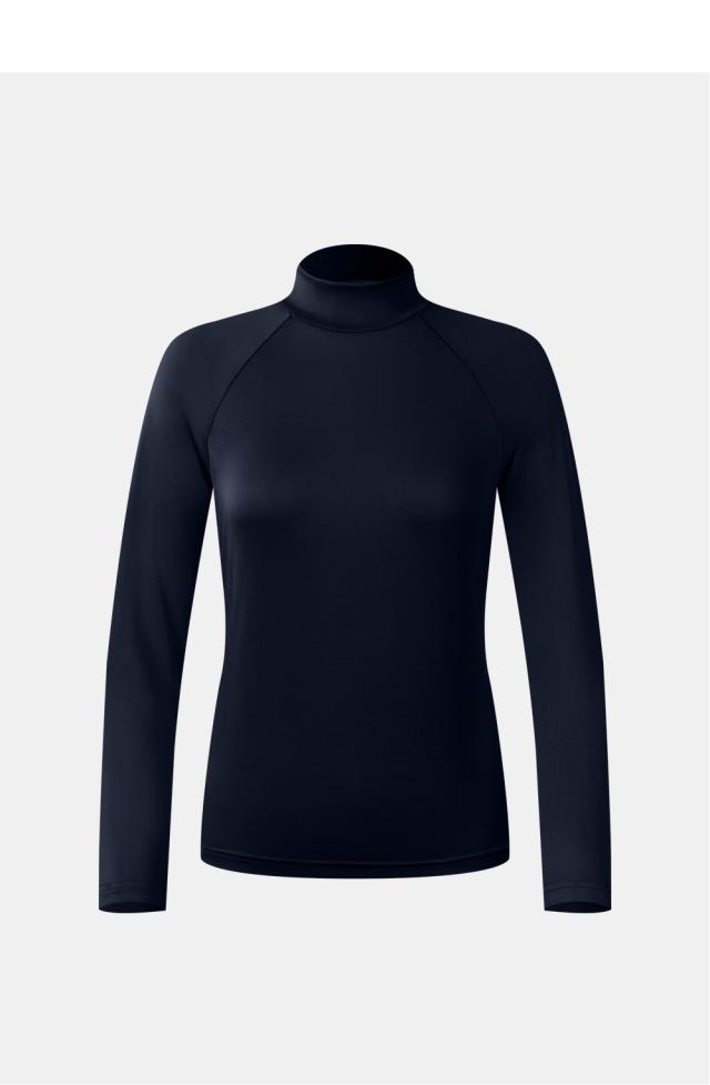 伸縮性抜群で、体にフィットしながらも動きやすく、 窮屈感のないタートルネックが首元をしっかりカバーします。