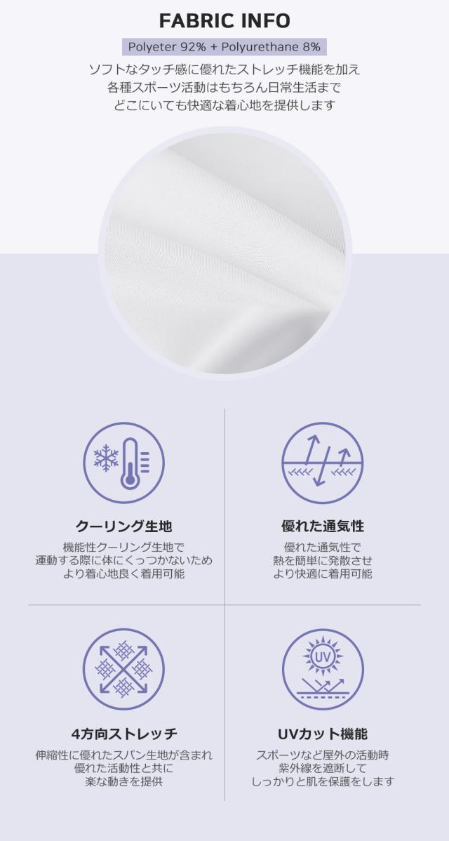 屋外スポーツにも最適なUVカット効果が備わっており、日差しから肌を守りながら快適な着心地を提供します。