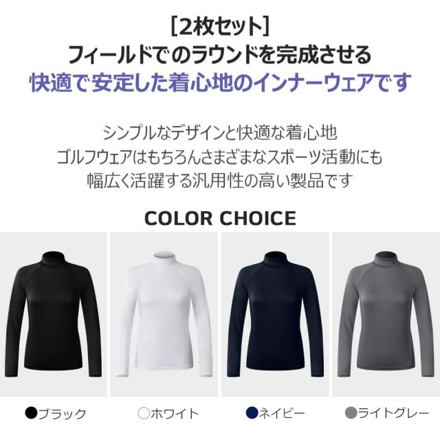 2枚セット 送料無料 ARMEDES アルメデス ゴルフウェア インナー ストレッチ 長袖 タートルネック ラグラン袖 リラックスフィット 日常 トレーニングウェア ランニング フィットネス ヨガ レディース S-XL 全4色 オールシーズン AR252