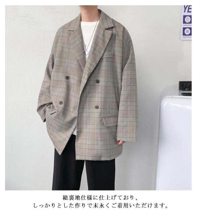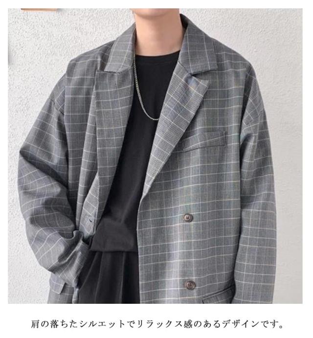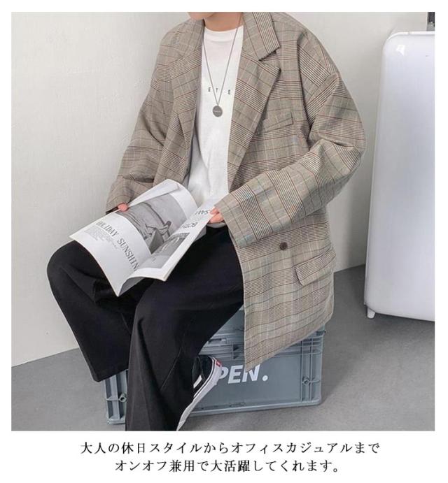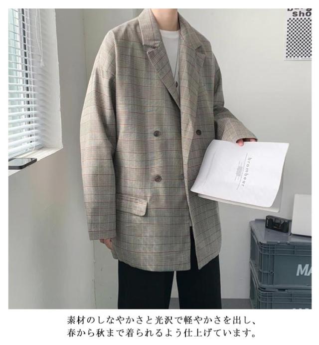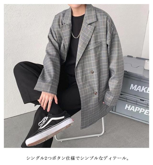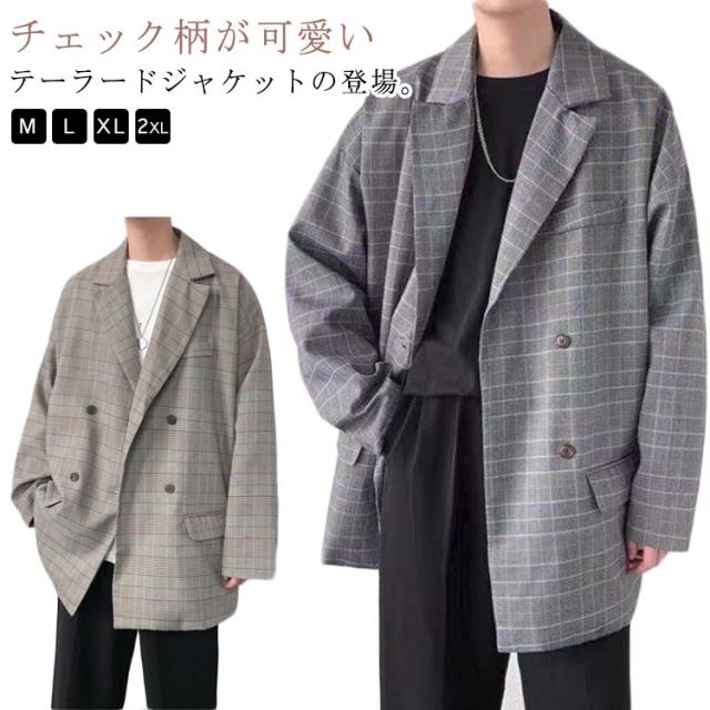 チェック柄 テーラード メンズ スーツジャケット 裏地付き アウター 春 テーラードジャケット ジャケット 薄手 ゆったり 2B 2つボタン 羽織り テーラードジャケット オーバーサイズ ライトアウター カジュアルスーツ ジャケット