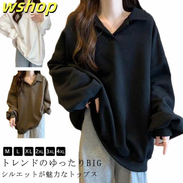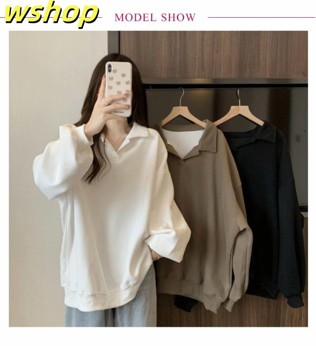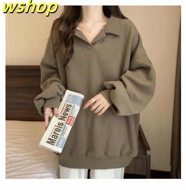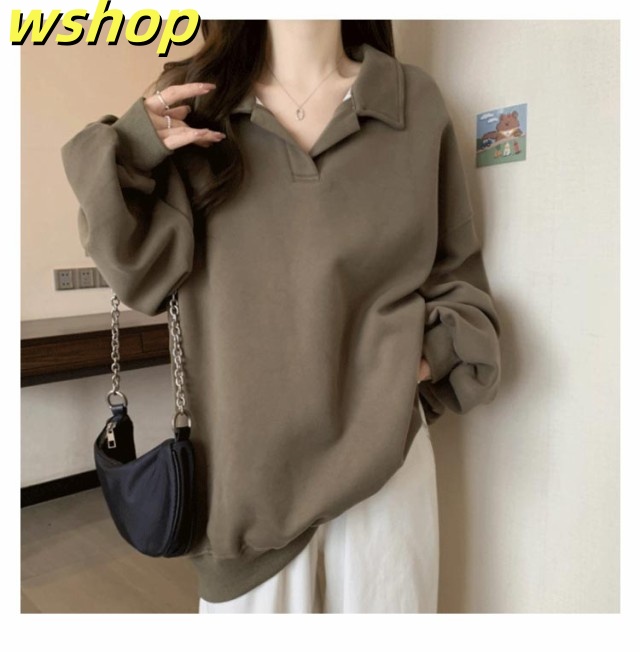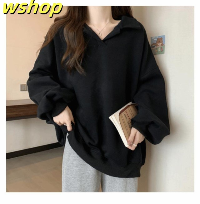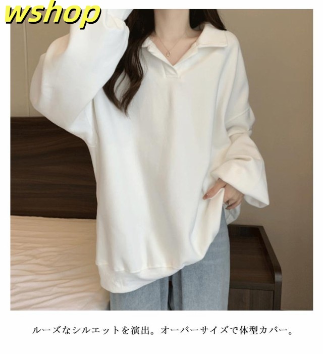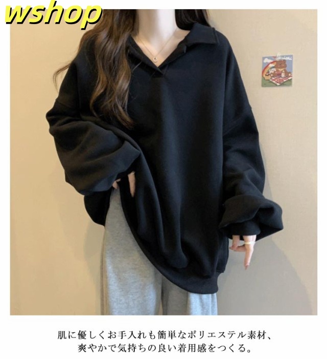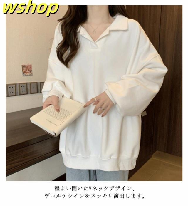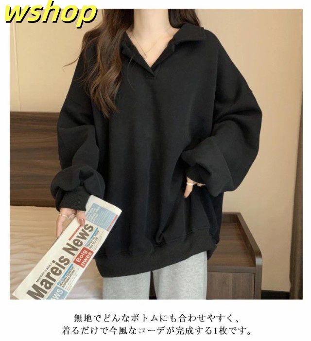 【wshop 】トレーナー 無地 パーカー レディース プルオーバー 長袖 秋新作 スウェット ゆったり 体型カバー 秋冬 重ね着 大きいサイズ トップス おしゃれ シンプル 着?せ きれいめ Vネック ミディアム丈 大人 女性 通勤 通学 ギフト 送料無料 プレゼント