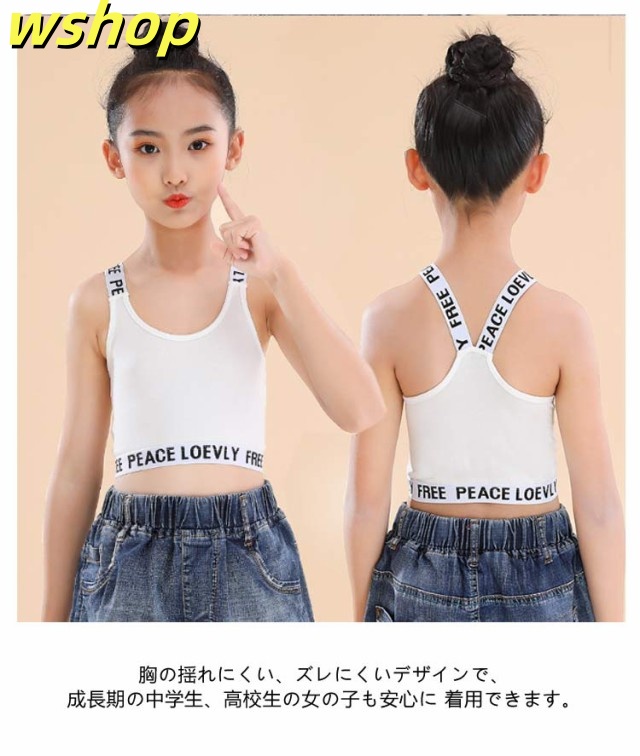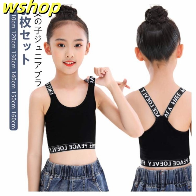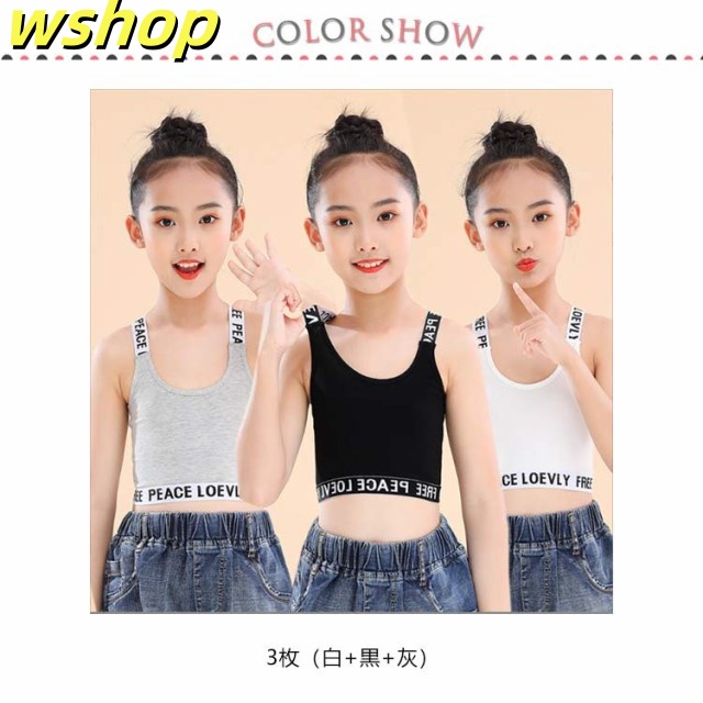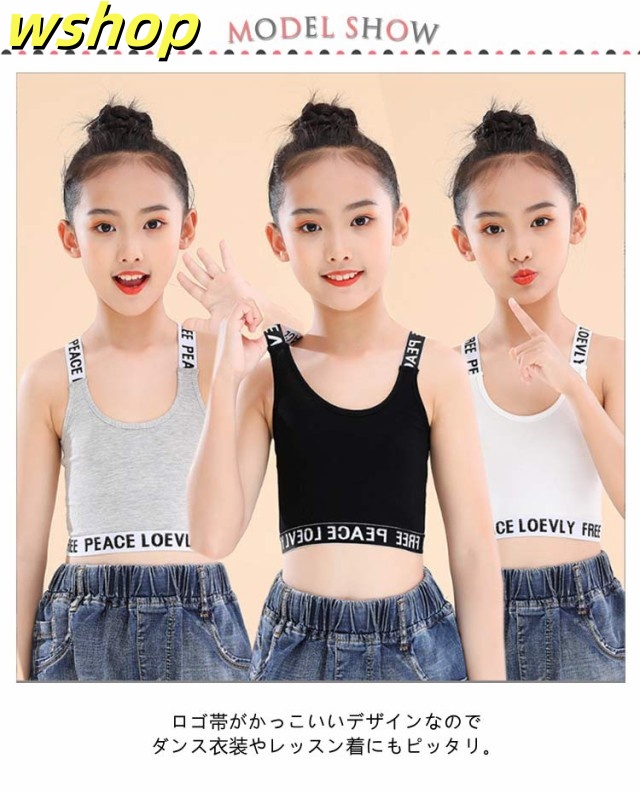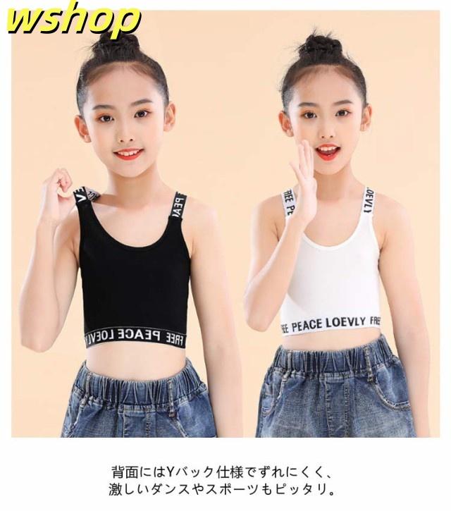 収納便利 売上急増中 小学生 ガールズ ジュニアブラ 】インナー ブラジャー 【wshop へそ出し 3枚セット Y字 キッズ シンプル 下着 タンクトップ 英字 肌着 女の子 コットン 中学生 ファーストブラ 綿 子供用 ダンス ハーフトップ ノンワイヤー 女子 送料無料