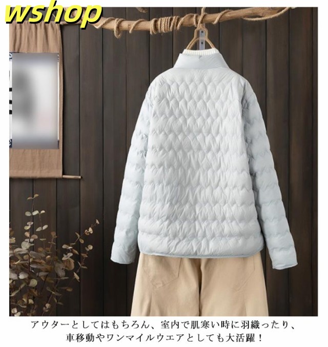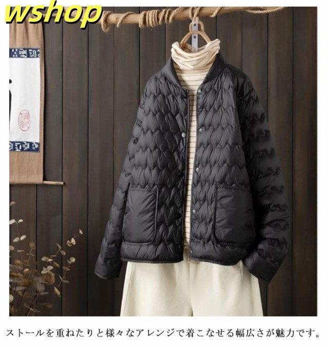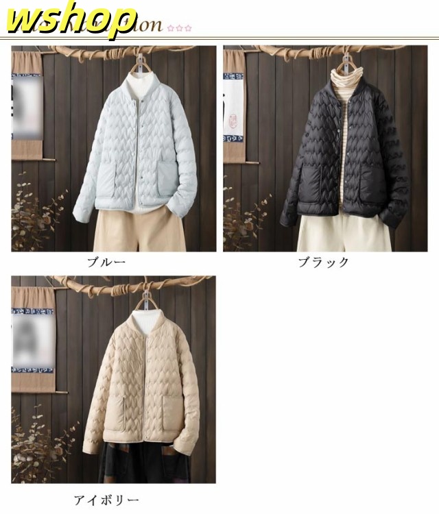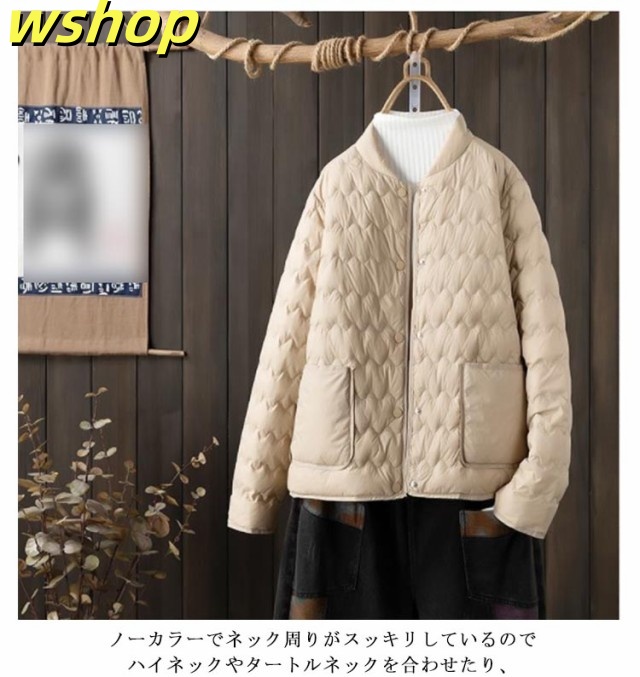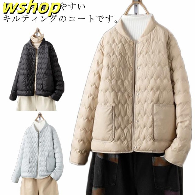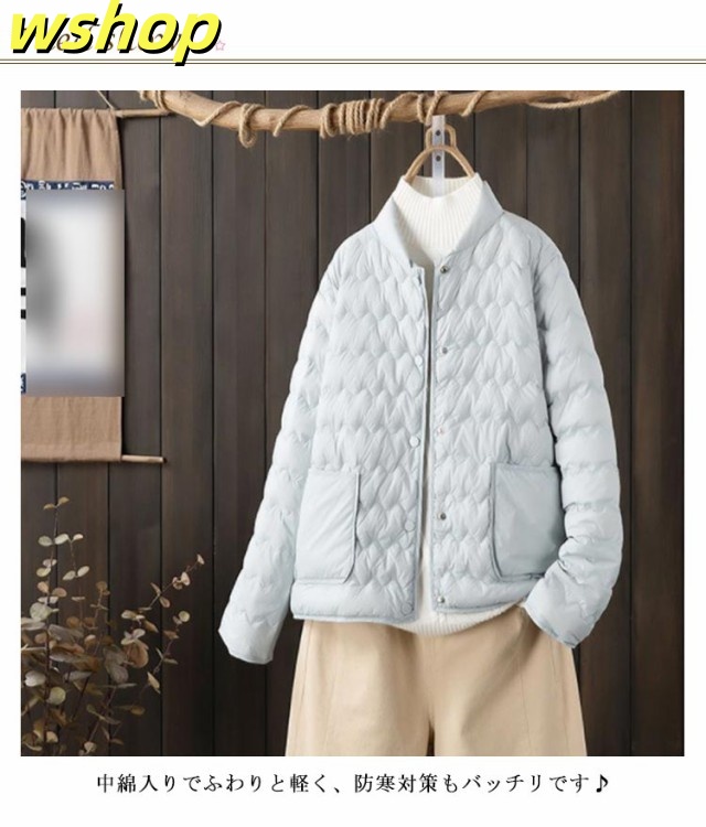 【wshop 】上着 レディース あたっか キルティングコート 中綿 羽織り ジャケット ノーカラー 防寒 ショートコート ダウンジャケット 冬 アウター ショート丈 ダウンコート 長袖 キルティングコート 無地 軽量 大きいサイズ 秋冬 防風 暖かい コート カジュアル 大人 通勤