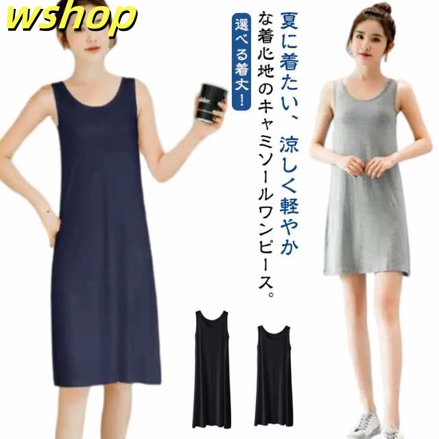 話題商品 SNS話題 シンプル 透け防止 ロング丈 ノースリーブ 夏 インナー 無地 ショート丈 】ペチコート インナーワンピース カジュアル 大人 【wshop キャミソールワンピ ルームウェア 選べる着丈 ワンピース タンクトップ 2タイプ 部屋着 在庫わずか
