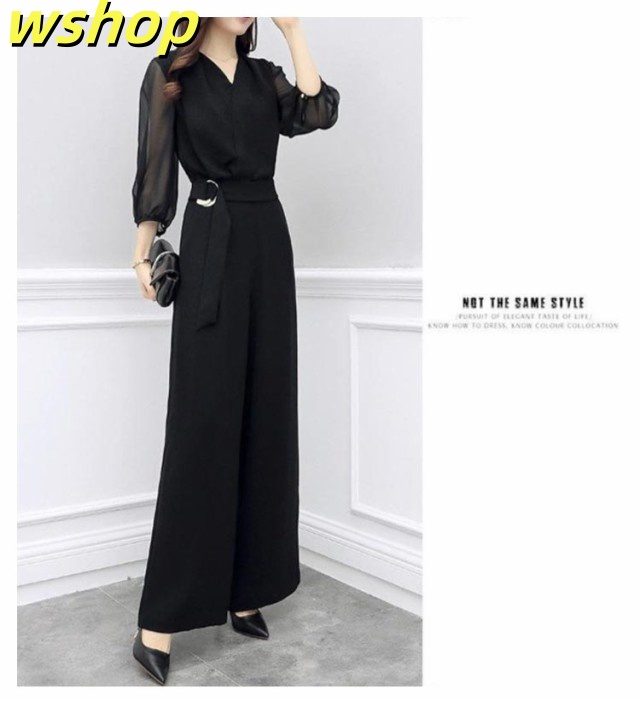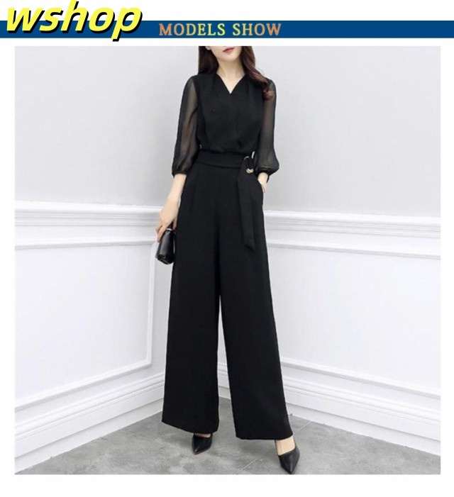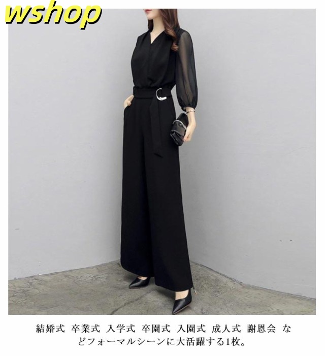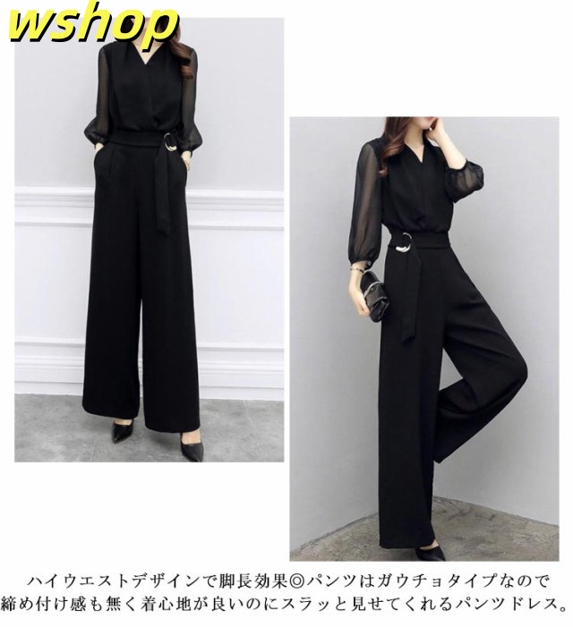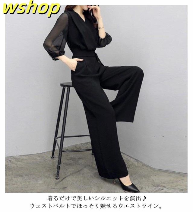 軽量仕様 レビュー高評価 着痩せ 透け感 送料無料 サロペット フォーマル パンツスーツ レディース 結婚式 演奏会 きれいめ 披露宴 40代 パンツドレス 】コーデ 50代 ママ お呼ばれ パーティードレス 20代 二次会 春 7分袖 オールインワン 【wshop 黒 今だけ限定