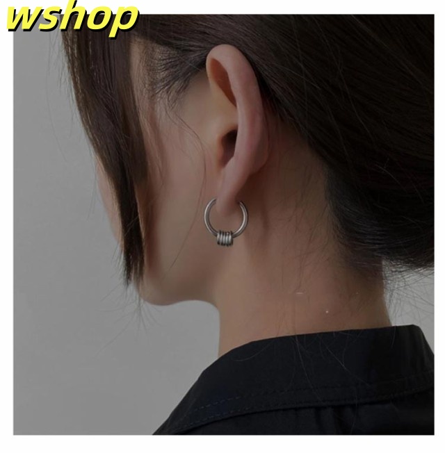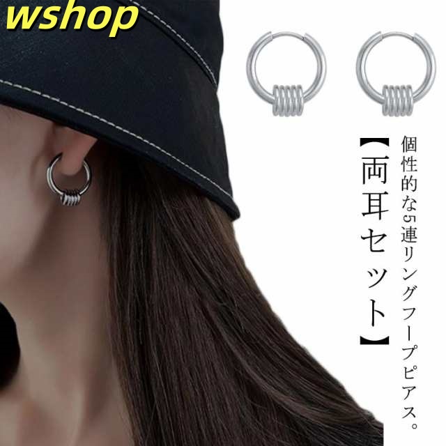 新登場 レビュー高評価 ピアス ユニセックス 両耳 レディース メンズ 】片耳 両耳セット 【wshop 個性的 リング イヤリング リングピアス 5連 可愛い おしゃれ フープピアス 韓国風 大人気 ストリート シルバー 大きい 送料無料