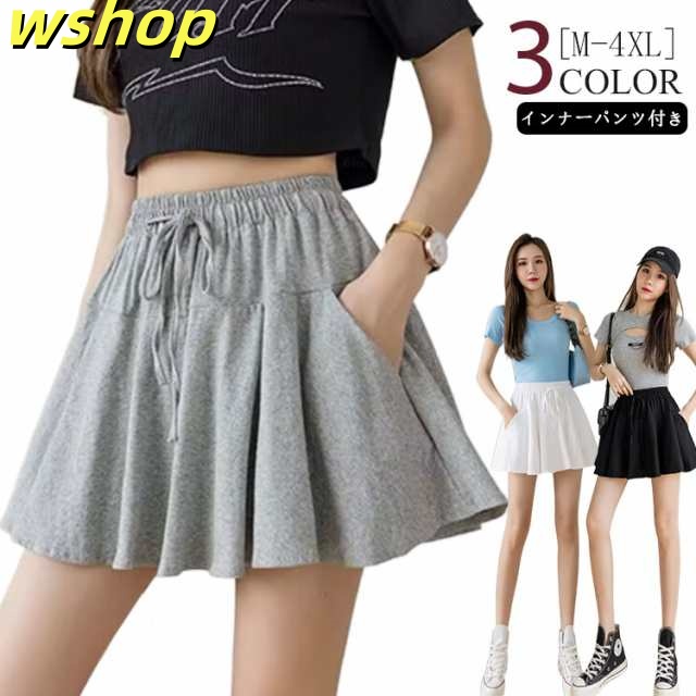 人気急上昇 売上急増中 ミニスカート ランニング レディース テニス ゴルフ 黒 グレー プリーツスカート ボトム インナーパンツ付き 】白 スポーツウェア ハイウエスト ペチパン付き ポケット付き スカート スウェット 無地 夏 【wshop ウエストゴム 今だけ限定