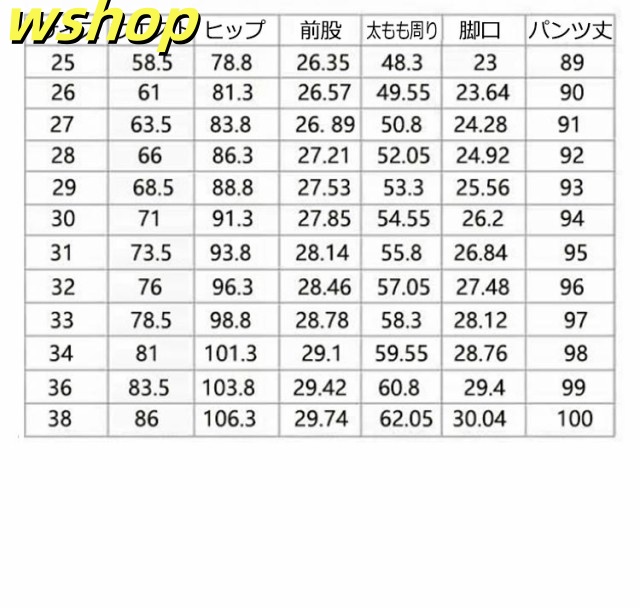 | サイズ | 25 26 27 28 29 30 31 32 33 34 36 38 |