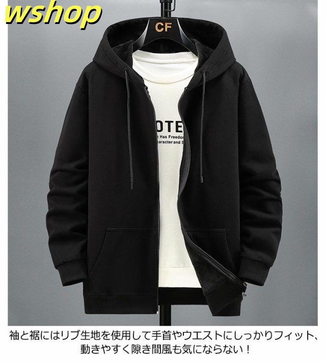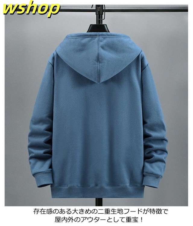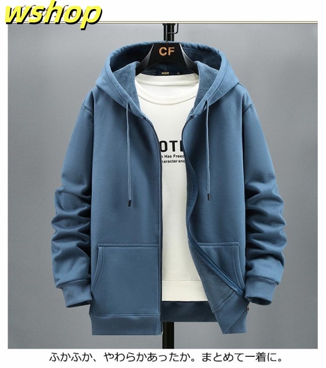 【wshop 】フルジップパーカー ジップアップパーカー メンズ 裏起毛 部屋着 ボアパーカー 長袖 ビッグシルエット オーバーサイズ 体型カバー 男女兼用 送料無料 無地 ユニセックス トップス あたたかい 防寒 スウェットパーカー ルームウェア ふわふわ かわいい カジュアル