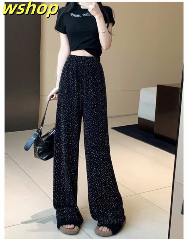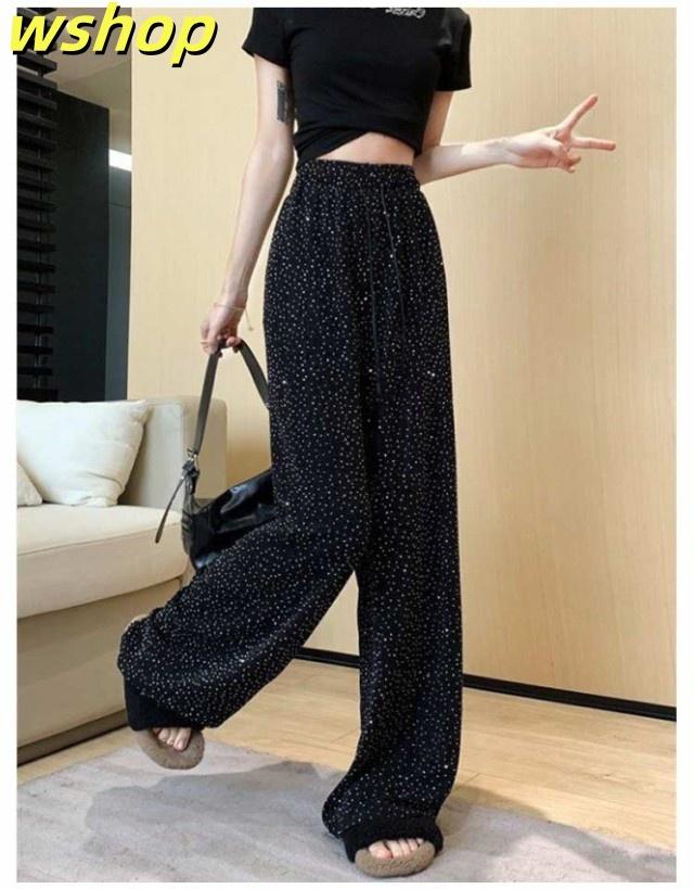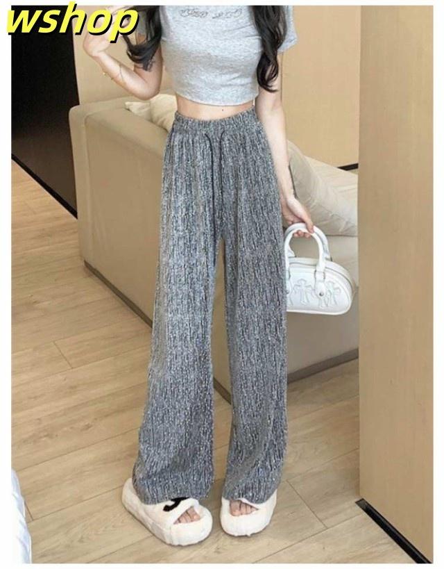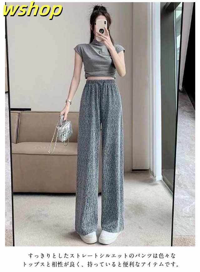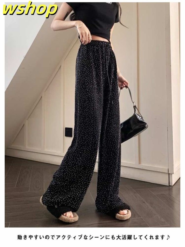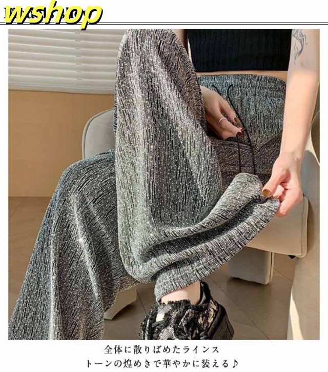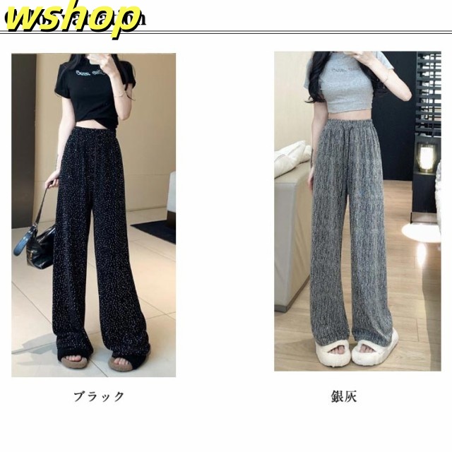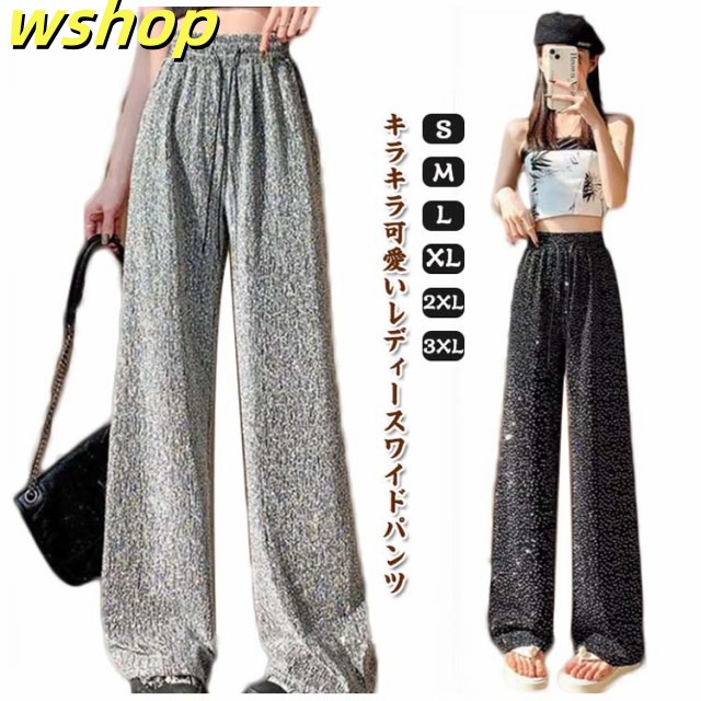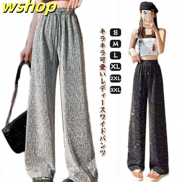 【wshop 】ワイドパンツ 春秋 春夏 薄手 ウエストゴム ロングパンツ レディース 美脚 キラキラ 着?せ ボトムス 女性 大人 ワイドパンツ カジュアルパンツ 長ズボン 可愛い ゆったり お洒落 20代30代40代 ゆったり 体型カバー 大きいサイズ ギフト プレゼント