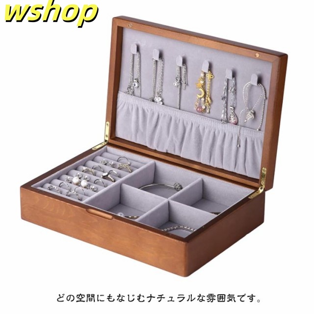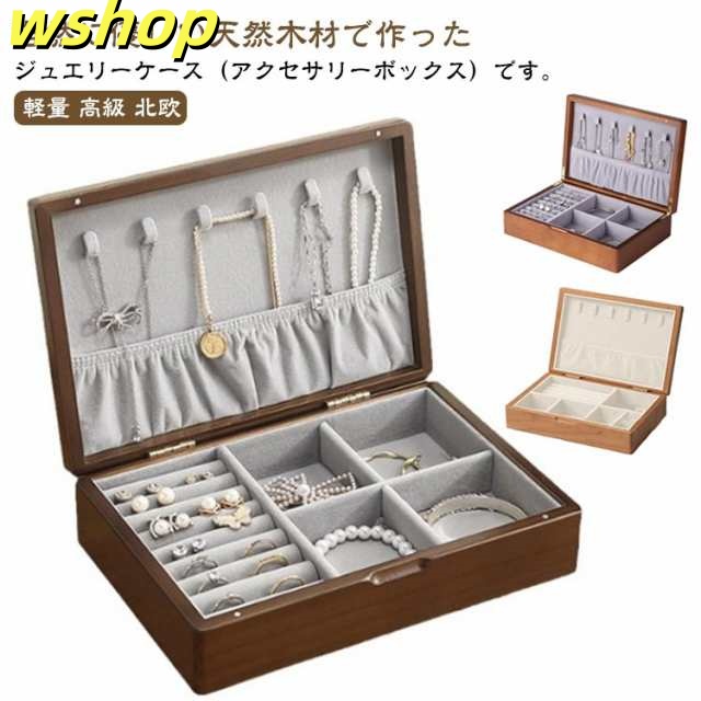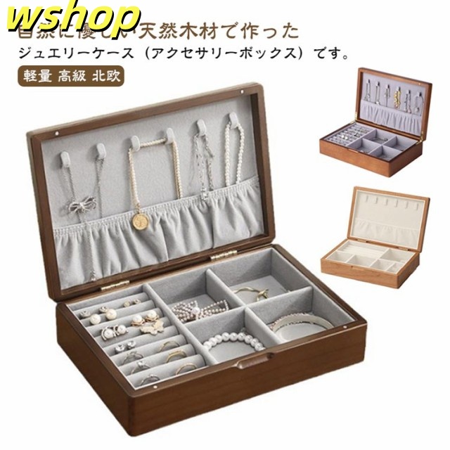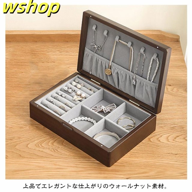 【wshop 】アクセサリーケース 大容量 木製 おしゃれ 収納ケース ジュエリーケース 小物入れ 北欧 ウォールナット材 ジュエス オフィス 小物収納 ケース 雑貨 リングケース コスメボックス ピアス 指輪 リング 腕時計 イヤリング ネックレス コスメ 収納