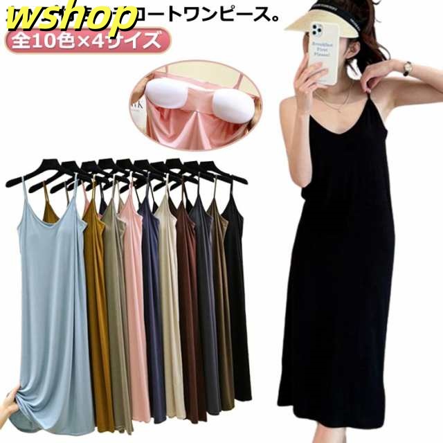 即納OK ランキング常連 インナーキャミワンピース ルームウェア ロング ノンワイヤー 【wshop インナー ブラトップインナー レディース 全10色 カップ付き 4サイズ キャミワンピ キャミソールワンピース キャミソール 】インナー 在庫わずか