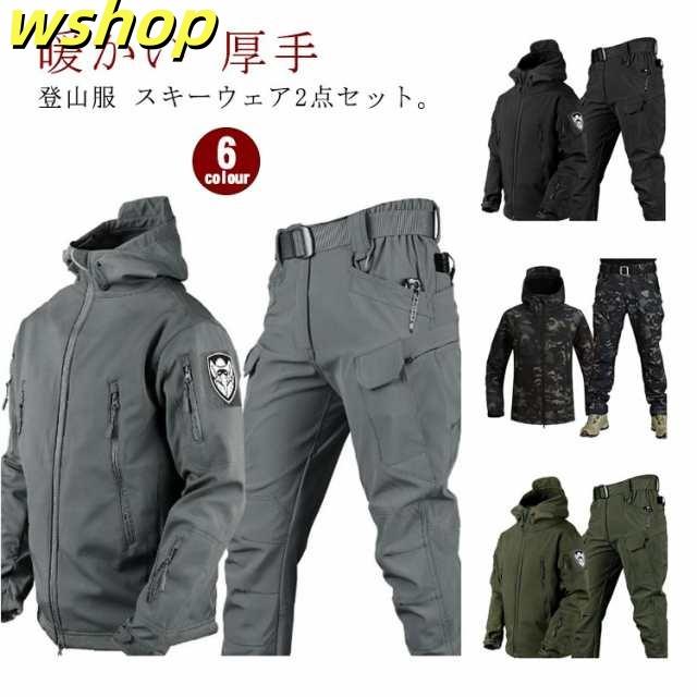 【wshop 】マウンテンジャケット メンズ レディース 2点セット 厚手 裏起毛 裏ボア 防寒 暖かい 登山服 ベルトなし スキーウェア マウンテンパーカー 長ズボン 上下セット アウトドアウェア ズボン 防水 ハイキングジャケット 防寒着 釣り 登山 アウトドアスポーツ 屋外作業