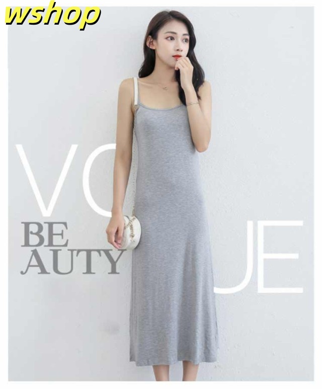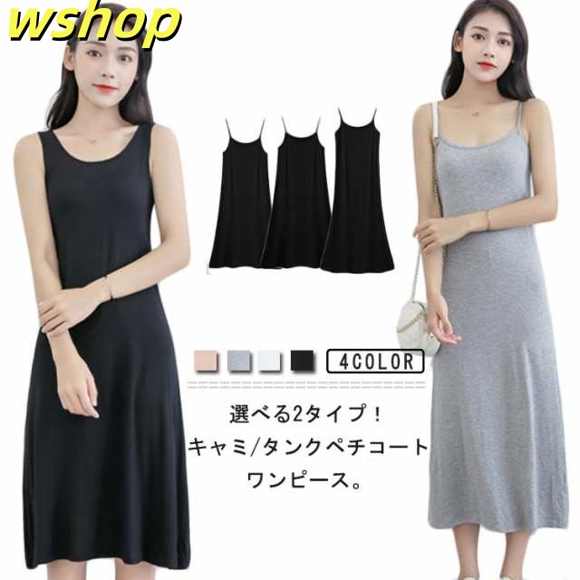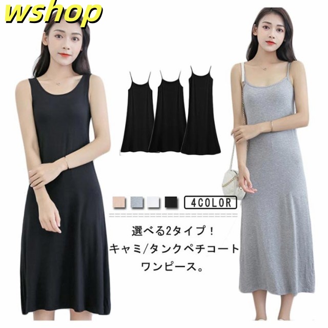 季節限定アイテム 毎日使える便利品 ランキング常連 】ロング丈 L 在庫わずか スリップ 膝丈 XL M インナーワンピース ペチコート ノースリーブ 部屋着 タンクトップワンピース タンクトップ/キャミソール 選べる着丈 透け防止 【wshop 軽量仕様 即納対応中