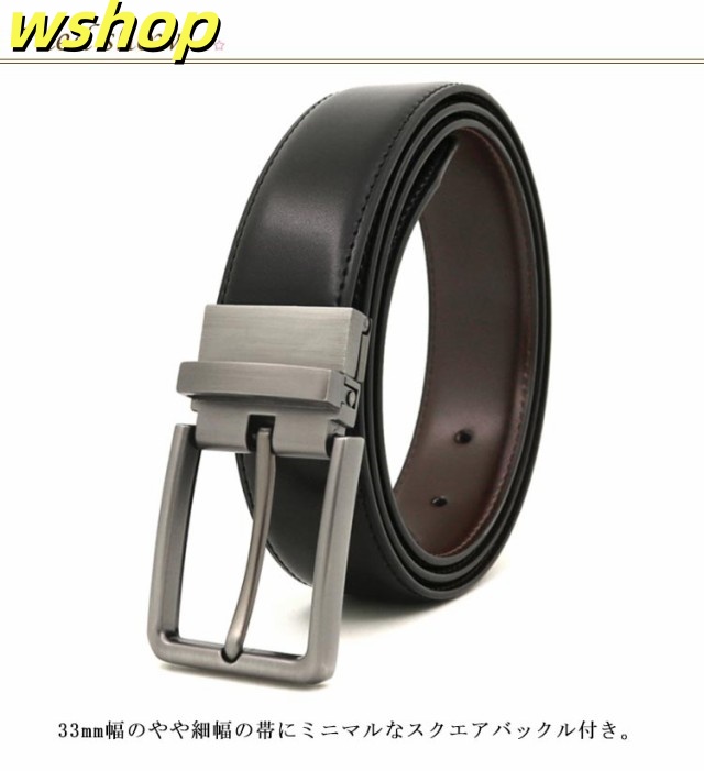 | 定番の本革レザーベルト 33mm幅のやや細幅の帯にミニマルなスクエアバックル付き。 リバーシブルで両面使えることも嬉しい。 父の日のギフトに最適。 | |