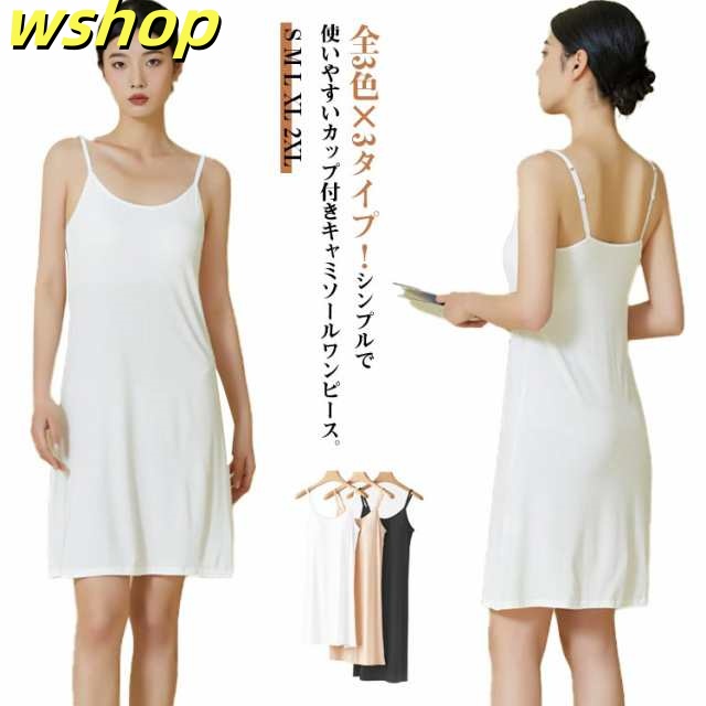 話題商品 売上急増中 胸パッド ロング インナードレス ホワイト ペチコート キャミソール ブラック 下着 ブラトップ 【wshop ルームウエア ナイトウエア 送料無料 ブラカップ付き スリップ キャミワンピ 】レディース ワンピース ベージュ カップ付き 今だけ限定