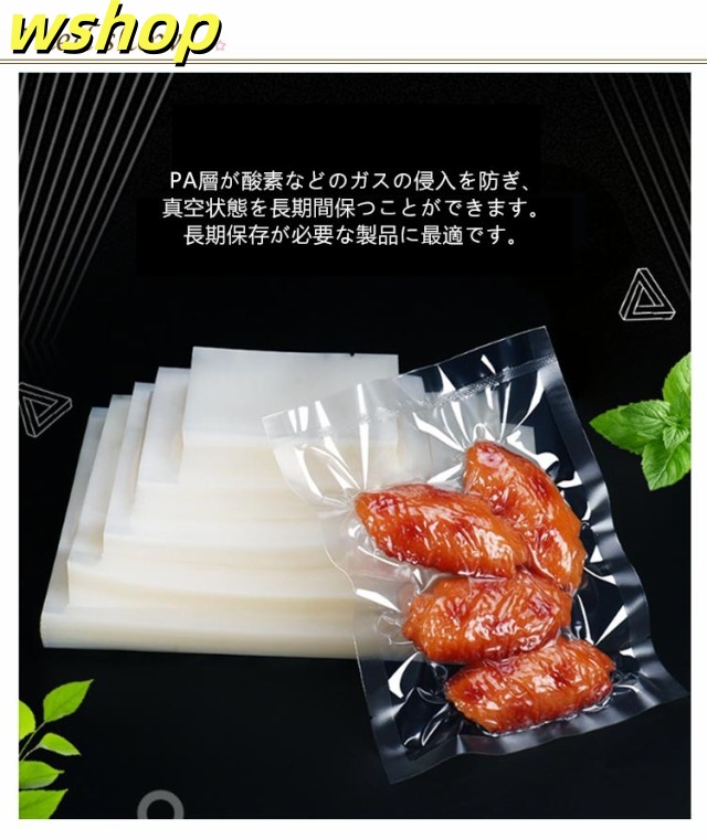 | 真空バッグ 100枚セット PA層が酸素などのガスの侵入を防ぎ、真空状態を長期間保つことができます。長期保存が必要な製品に最適です。 高温に耐える構造で、真空調理などの高温処理が必要な場面でも 安心して使用できます。 サイドにノッチ付き、真空パックした物をいざ開封するとき、ハサミいらずでとっても便利です。 | |