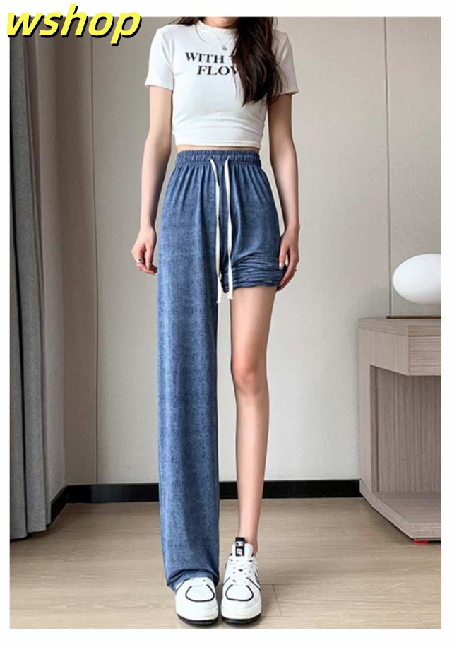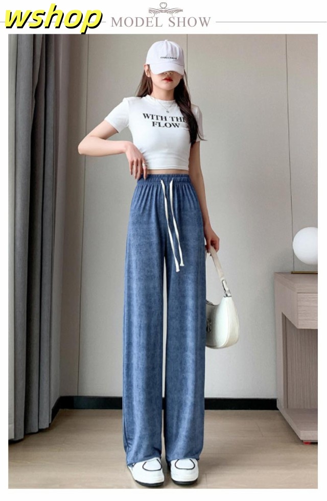 話題商品 ランキング常連 ウエストゴム 冷感 無地 ストレートパンツ ストレート 夏用 涼しい UVカット 春 接触冷感 デニムパンツ 【wshop ひんやり レディース 薄手 夏 ジーンズ デニム ロング丈 ワイドパンツ 】デニム 2枚組 送料無料