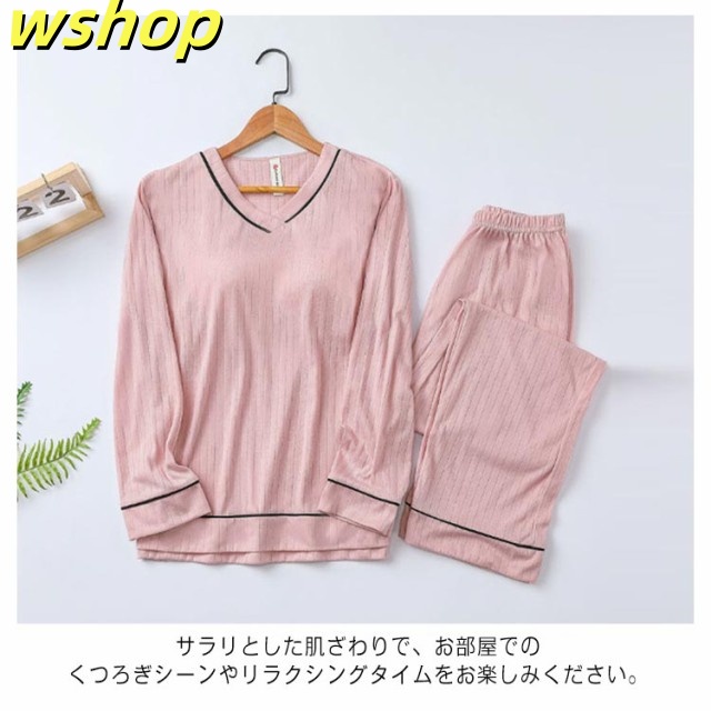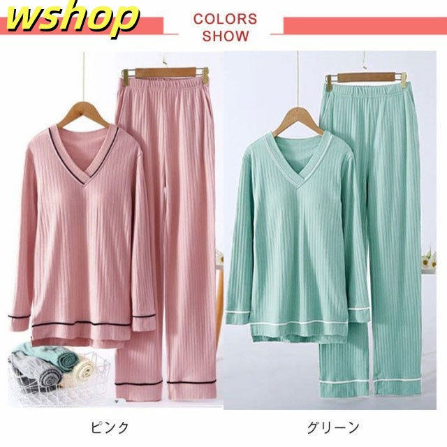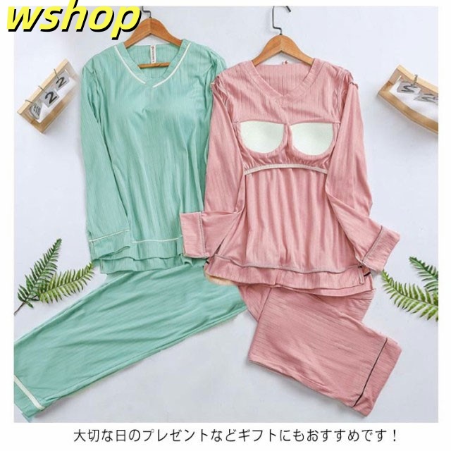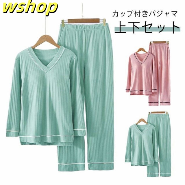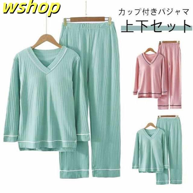 新登場 ランキング常連 ギフト プレゼント 部屋着 セットアップ カップ付き 秋 リブ 贈り物 【wshop 】夏 春 柔らか 寝間着 ルームウェア 大きいサイズ 可愛い 快適 パンツ ゆったり パジャマ 長袖 レディース 上下セット ウエストゴム 無地 今だけ限定