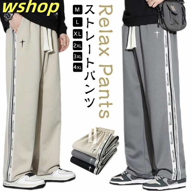 【wshop 】イージーパンツ ライン入り ワイドパンツ イージーパンツ ストリート系 アメカジ ストレートパンツ ミリタリーパンツ パンツ カジュアルパンツ リラックス メンズ ストリート ルームパンツ 運動用 ルームウェア 部屋着 ダンスパンツ 春 秋 冬