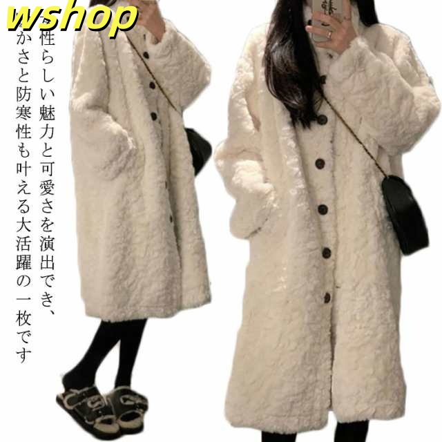 【wshop 】ファーコート コート レデイース ファー フェイクファー ジャケット 立ち襟 ボアブルゾン アウター 防寒コート 冬 長袖 ゆったり ふんわり 暖かい あったか 秋冬コート ふわふわ 体型カバー 防寒 柔らかい モコモコ 韓国風 きれいめ カジュアル 秋冬 送料無料