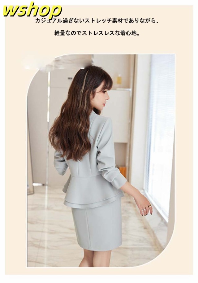 | 【エレガントなセットアップスーツ♪2点セット 】【ジャケット+パンツorジャケット+スカートの2タイプ 】 ウエストから広がるダブルペプラムが女性らいさをプラスするシャット。晴れやかな入学式・卒業式スタイルにぴったり♪ きちんと感のある絶妙なIラインシルエットを出したスカートは、360度どこから見ても完璧な美しさ。 カジュアル過ぎないストレッチ素材でありながら、軽量なのでストレスレスな着心地。 ●おすすめシーン 入学式(入園式)、卒業式(卒園式)、演奏会、発表会、学校行事、参観、セレモニー、2次会(二次会)、1.5次会、お呼ばれ、女子会、食事会、成人式、同窓会、謝恩会、誕生日会、七五三、お宮参り、パーティー、デート、婚活、街コン、オフィス、通勤、キャリア、ビジネススーツなど、20代・30代・40代・50代まで母親・ママさんにもご活用頂けるフォーマルなレディーススーツです。 | |