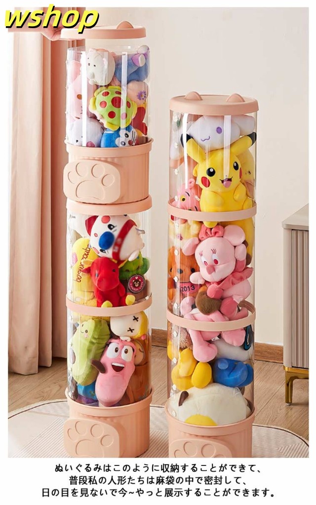 即納OK SNS話題 ぬいぐるみ DIY ぬいぐるみ収納ボックス 大容量 円柱形 蓋付き 透明 高さ47cm/77cm/107cm 防塵 コレクションケース ぬいぐるみ収納 【wshop 】おもちゃ収納ボックス クリア 直径26cm 展示ボックス ディスプレイケース 送料無料