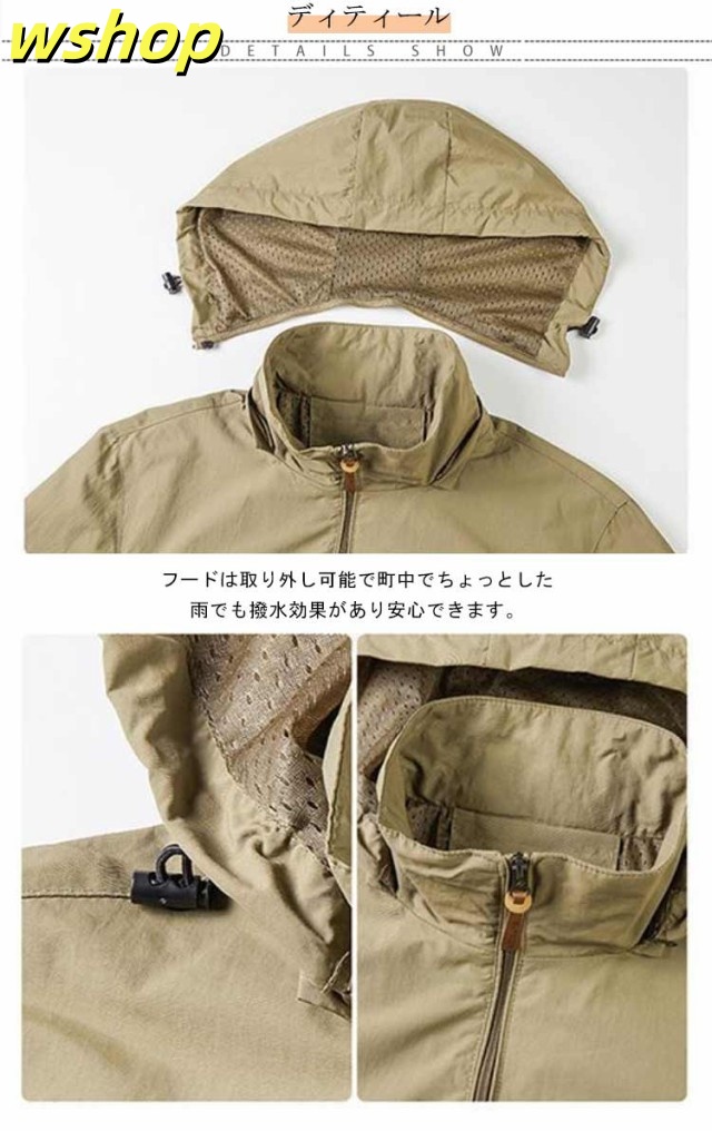 撥水 マウンテン ジャケット マウンテンパーカー フード脱着可 ベージュ ダークグレー フード ジャケット ライトアウター ウィンドブレーカー 大きいサイズ アウトドアウエア 春服 ブルゾン ブラック マウンテンパーカー カーキグリーン