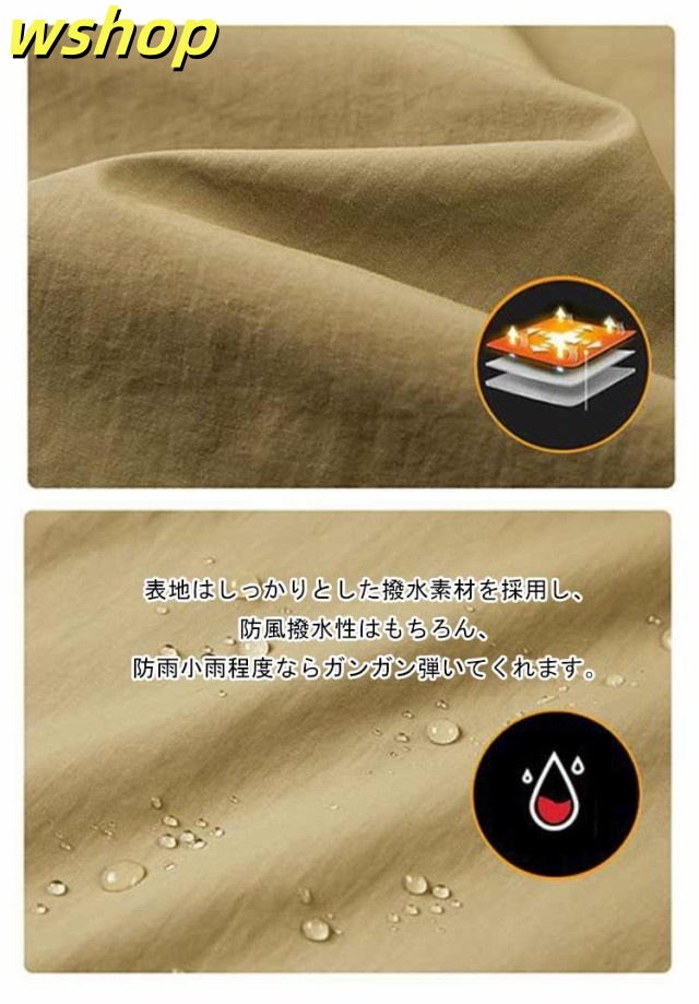 | さらっとした生地感で着心地も抜群のジャケット。 フードは取り外し可能で町中でちょっとした雨でも撥水効果があり安心できます。 表地はしっかりとした撥水素材を採用し、防風撥水性はもちろん、防雨小雨程度ならガンガン弾いてくれます。 ファスナー付きポケットが表に3個、裏側にポケットが2個ついています。 フードが取り外し可能、季節の変わり目にぴったり高機能マウンテンパーカー。 スポーツや登山、キャンプや釣りはもちろん、自転車やバイクでも快適にご利用いただけます。 ライトアウターとして、通勤通学にも旅行、アウトドアなどカジュアルな場合にも適用です。軽量で持ち運び便利。 | |