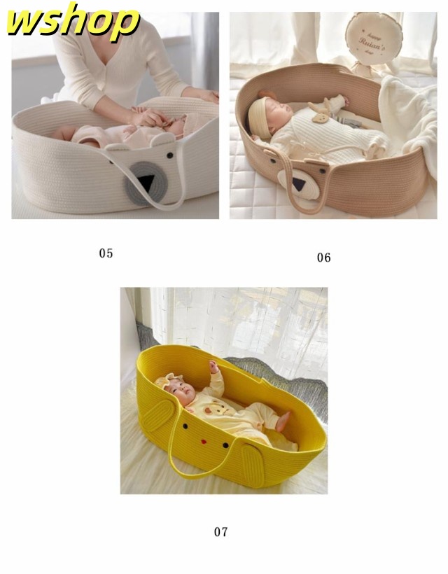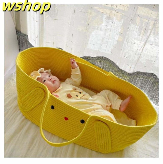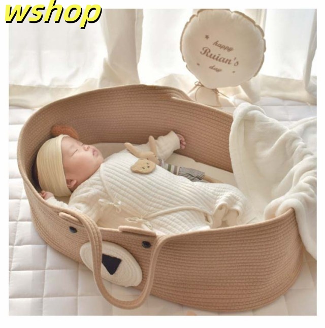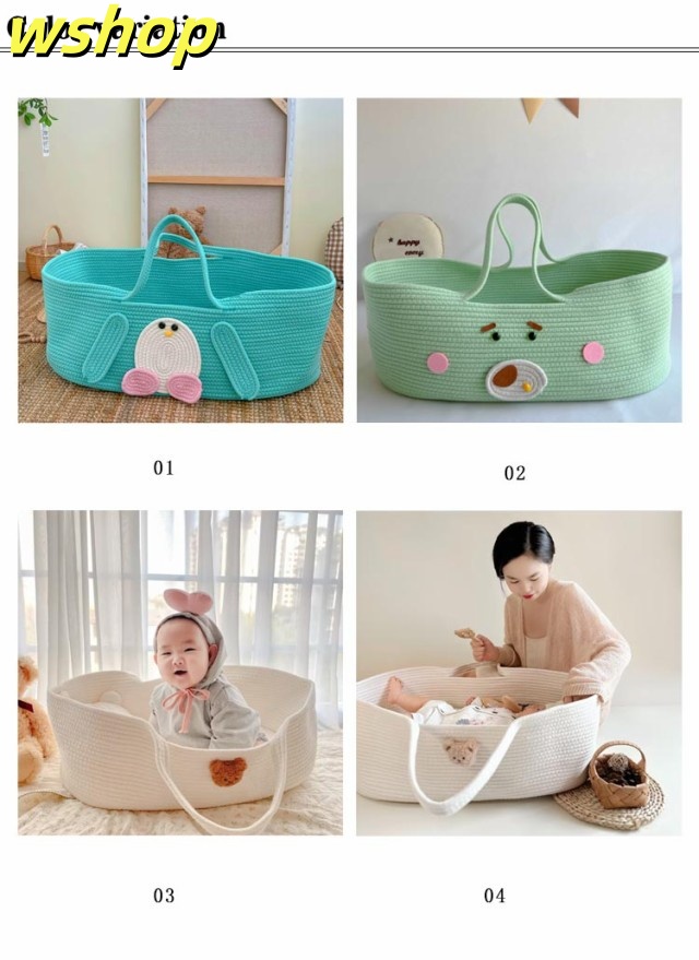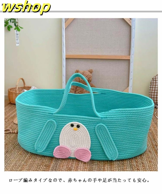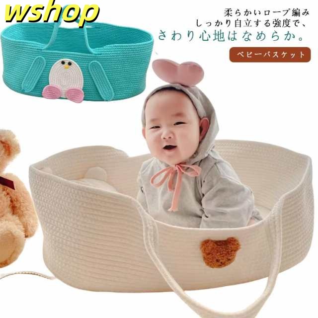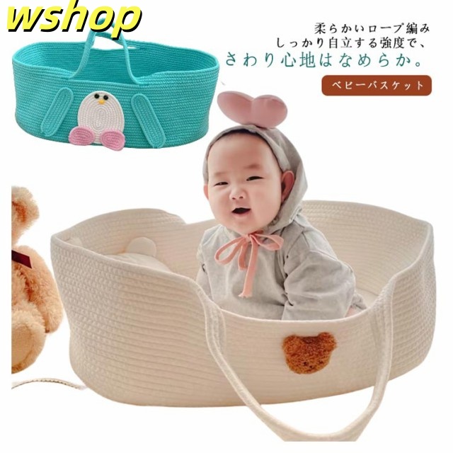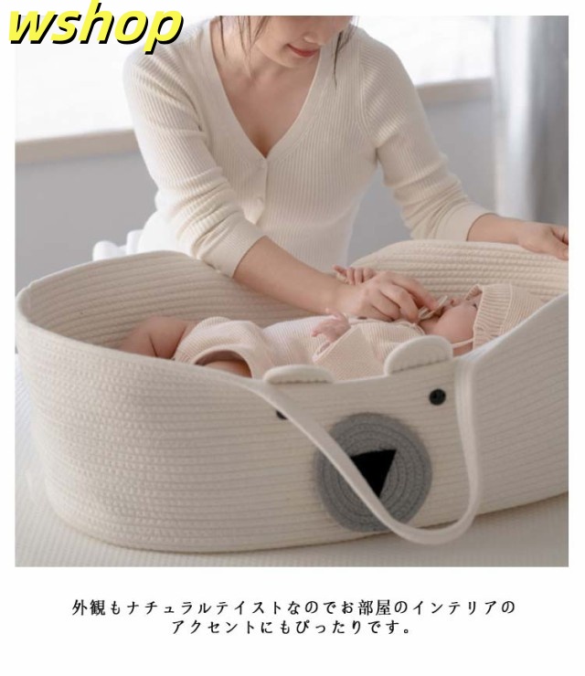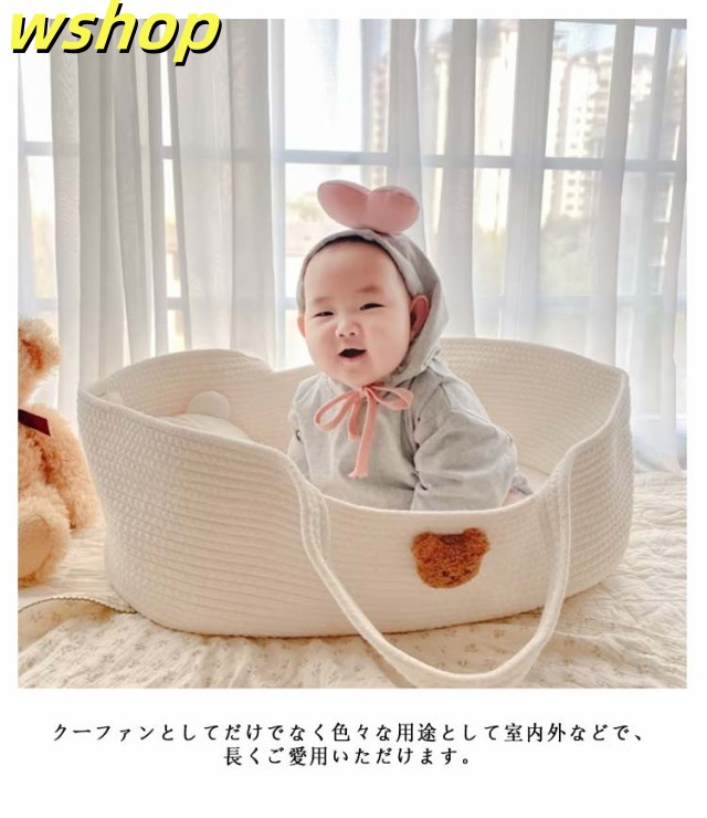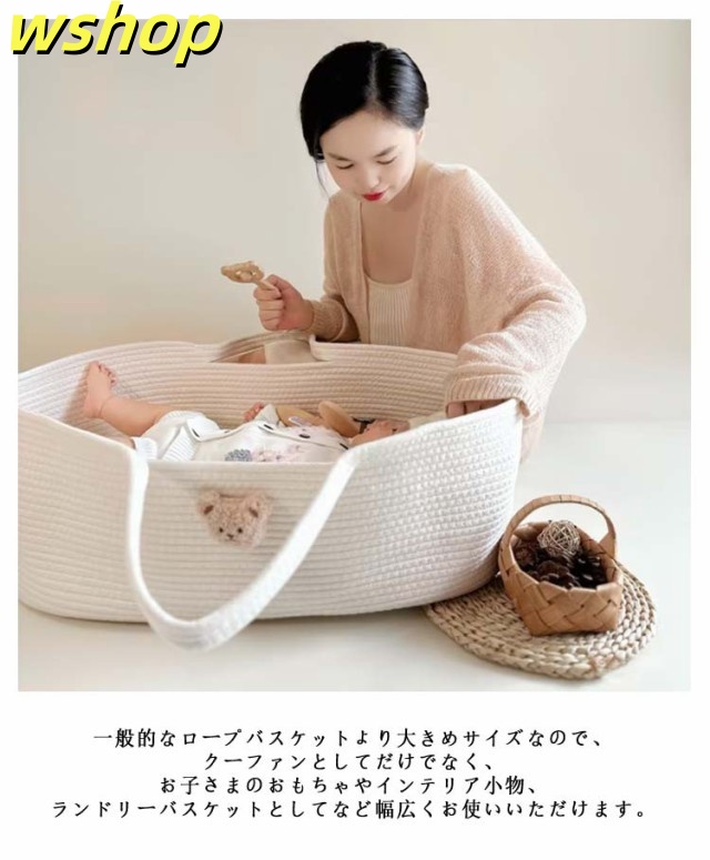 収納便利 レビュー高評価 クーハン ベビー 春 ロープ編み 】ベビーベッド コンパクト 籠 持ち運び お昼寝 赤ちゃん用 添い寝 ギフト シンプル 赤ちゃん バスケット クーファン 北欧風 【wshop ベビー用 ベビーキャリー 折りたたみ かご 在庫わずか
