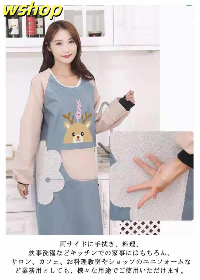 売れ筋アイテム 毎日使える便利品 割烹着 チュニック 即納OK 売上急増中 防水 エプロン 給食 ロング 防汚 】袖付きエプロン 保育士 【wshop 在庫わずか かわいい 学校 スモック 母の日 おしゃれ 介護士 手拭き付き プレゼント レディース 料理 数量限定入荷