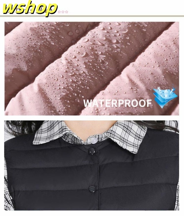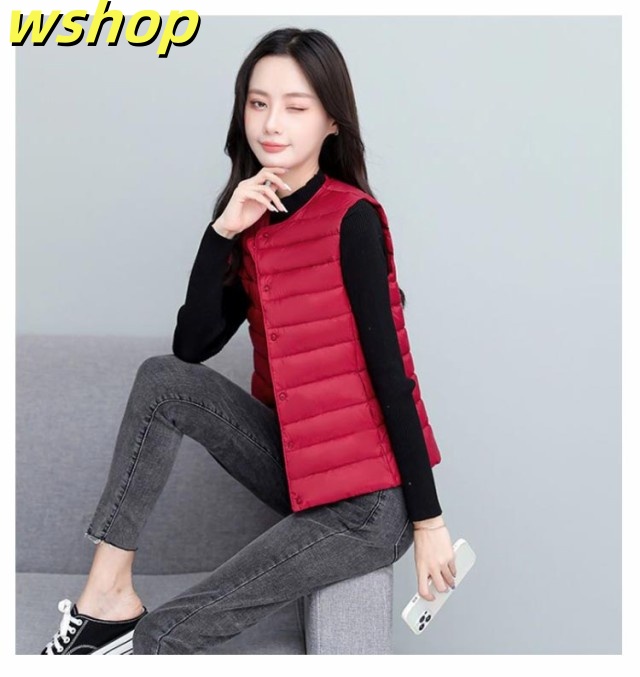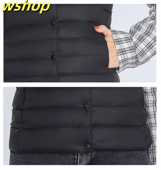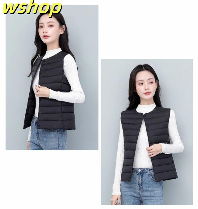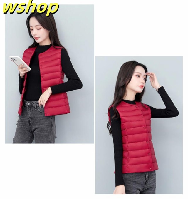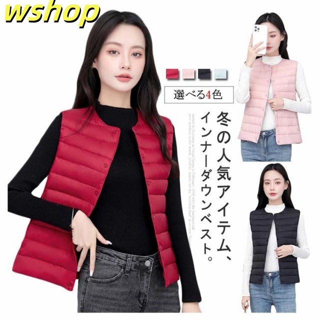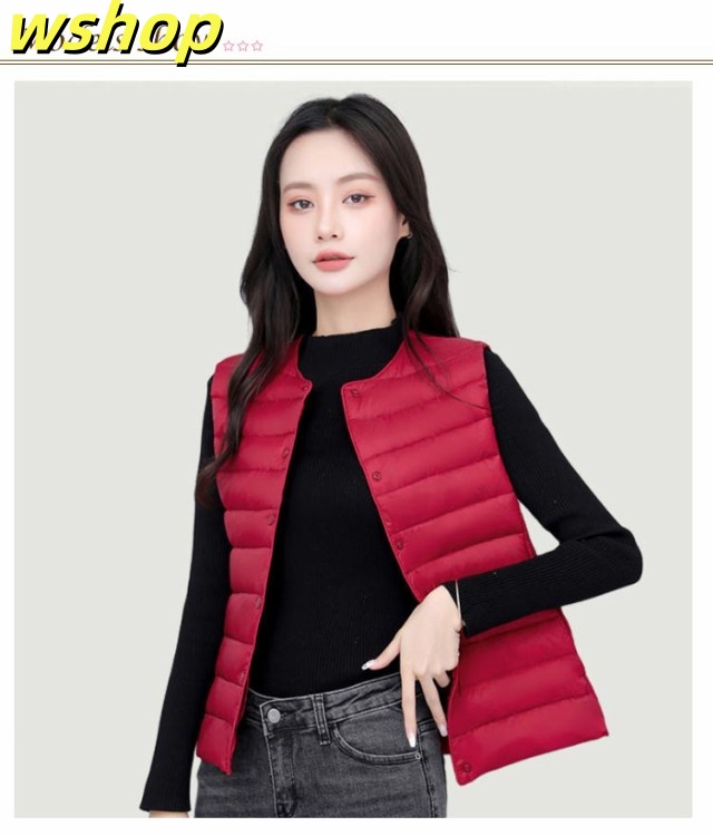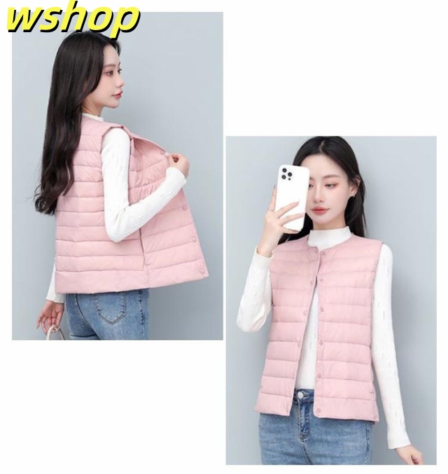 【wshop 】ライトダウン インナーダウン ベスト レディース ダウンベスト 中綿ベスト ファイバーダウン ベスト ノーカラー ダウンジャケット ショート丈 スリム コンパクト 大きいサイズ 軽量 薄手 秋冬 暖かい あったか 防寒 保温 30代 40代 50代 大人 おしゃれ 【送無】