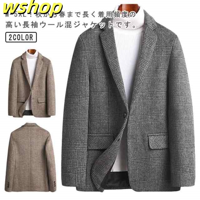 【wshop 】ウール混 冬服 アウター チェスターコート ジャケット 細身 ショートコート ビジネス メンズ 秋 チェスターコート カジュアルジャケット 2つボタン スーツ テーラードジャケット 厚手 ブレザー ダッフル生地 紳士 男性着 通勤 大きいサイズ M-5XL 春 秋