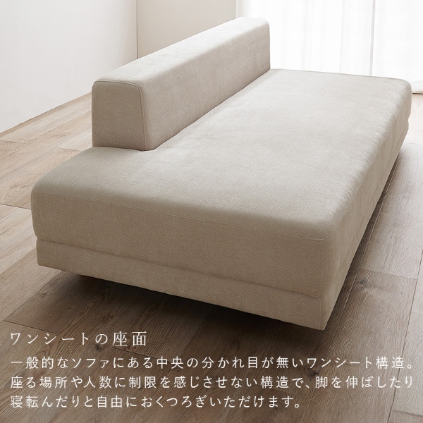 つなぎ目の無い贅沢な広さのワンシート座面なので深く腰掛けゆったりとくつろげます。