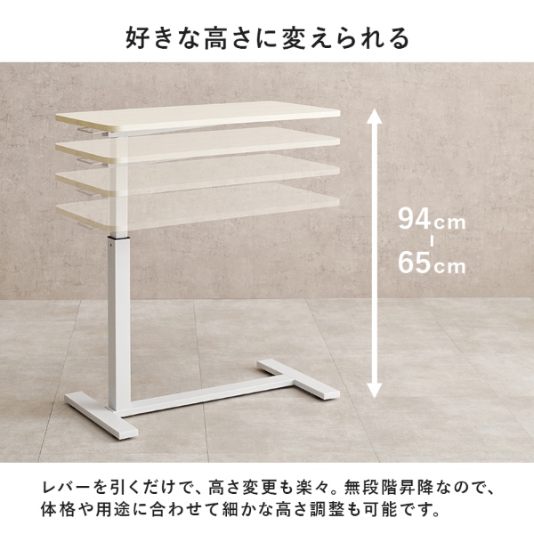 ガス圧昇降サイドテーブル 幅80cm 昇降 テーブル 伸縮 サイドテーブル 無段階調節 コンパクト 高さ調節 ダイニング ガス圧式 昇降式 作業台 隠しキャスター ベッドテーブル リビング 補助テーブル 在宅ワーク ベッド横 サイドテーブル コの字脚 脚が邪魔にならない 高さ調整 おしゃれ