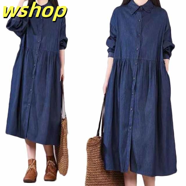 秋の新作特集 多機能デザイン 大きサイズ ランキング常連 シャツワンピース 】デニムワンピース ロングワンピース ミモレ丈 フロントボタン 人気急上昇 送料無料 春秋 ワンピ 長袖ワンピ 【wshop ゆったり Aライン レディース カジュアル 膝下 無地 韓国系 即納対応中